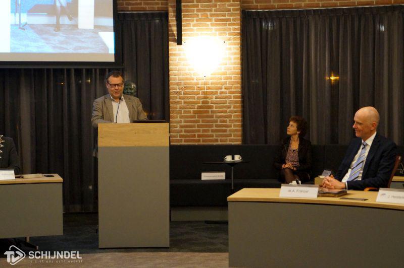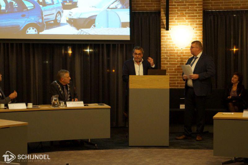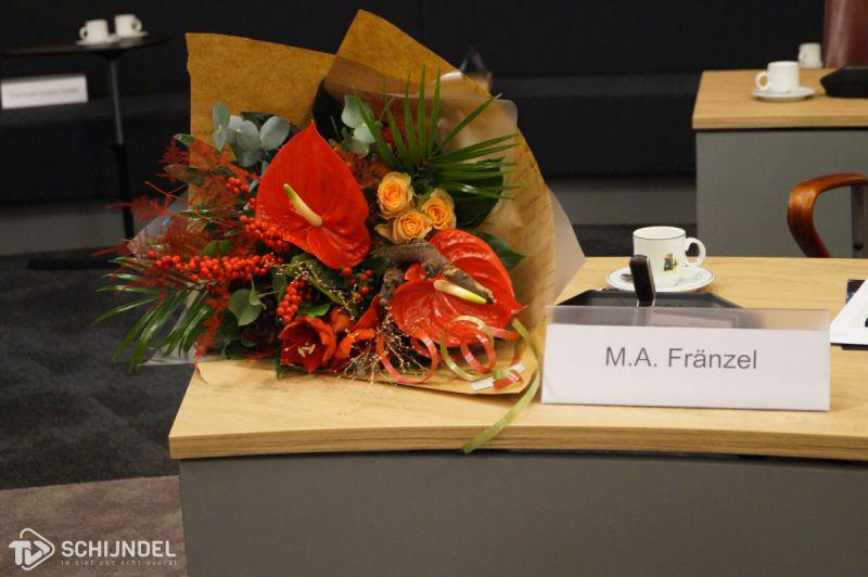 Meierijstad - Voor een volle raadzaal nam op maandgavond 4 december waarnemend burgemeester Marcel Fränzel afscheid van de gemeente Meierijstad. Loco burgemeester Eus Witlox hield een afscheidsbetoog. Raadsleden Johan van Gerwen van het CDA en Laurens van Voorst van Hart voor Schijndel hielden daarna een ludiek betoog met grappige afbeeldingen over Fränzel en over Meierijstad. "Meester Fränzel" werd zeer hartelijke bedankt voor al zijn werkzaamheden en vooral voor de geleerde zaken in de nieuwe gemeenteraad. Tot slot hield Marcel Fränzel zelf nog een afscheidsbetoog waarin hij iedereen hartelijke dankte en vertelde dat Meierijstad voor hem van alle waarnemingen goud was. "Ik heb er van genoten, bedankt", sloot Fränzel de vergadering af. TVSchijndel was erbij. Een uitgebreide fotoserie is te vinden in ons Fotoboek. Foto's zijn voor privédoeleinden gratis te downloaden. Woensdag 6 december, zal de heer Kees van Rooij geïnstalleerd worden als burgemeester van Meierijstad.