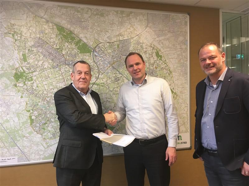 Meierijstad - De aanleg van glasvezel in het buitengebied van Meierijstad en dus ook Schijndel komt een stuk dichterbij. Het college van burgemeester & wethouders heeft eind 2017 ingestemd met de overeenkomst “Aanleg glasvezel buitengebied’ met de Maatschappij voor Breedband in Brabant (Mabib). Wethouder Harry van Rooijen heeft zijn handtekening gezet onder de overeenkomst. De wethouder is blij met deze belangrijke stap: “Via het supersnelle glasvezelnetwerk kunnen adressen in het buitengebied dan gebruik maken van televisie-, internet- en telefoniediensten. Maar er is meer; via dit toekomstbestendig medium kunnen ontwikkelingen rond (thuis) zorg, educatie en bedrijfsvoering ontsloten worden. Met de aanleg in de buitengebieden geven we de economische groei in die gebieden echt een stevige impuls.” (Foto: v.l.n.r.: Wethouder Harry van Rooijen, Martijn Bethlem en Roël Hoppezak namens Mabib)