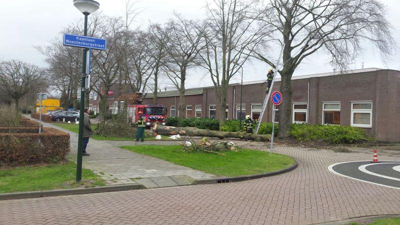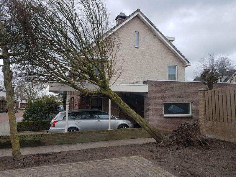 Schijndel - Een zeer zware Westerstorm raasde op donderdag 18 januari over Nederland. Voor Noord-Brabant was code oranje van kracht maar in andere delen was code rood afgegeven. In Schijndel gingen op heel veel plekken de bomen als luciferhoutjes naar de grond. Op onze Facebookpagina werd massaal gereageerdop een oproep om foto's van stormschade achter te laten. De Structuurweg en de Molendijk-Noord zijn enige tijd afgesloten geweest door omgevallen bomen. Ook de brug bij de Steeg was dicht, mogelijk door de harde windvlagen. Opvallend dat ook in ons dorp dak(platen) van schuurtjes of dakpannen van woonhuizen werden geblazen, vermoedelijk door de zware windstoten. De brandweer heeft via Facebook laten weten erg druk te zijnmet meldingen. Volgens de politie zijn er tientallen meldingen van omgewaaide bomen en stormschade aan diverse woningen of openbare gebouwen. "Bel alleen bij acuut gevaar of noodsituaties naar 112, in andere gevallen bel de gemeente of kijk wat je zelf kan", is een oproep die de hulpdiensten doen. Onder 'lees meer' zijn enkele ingestuurde foto's te zien. Een uitgebreide reportagevan de stormschade is te vinden in ons fotoboek. Foto's TVSchijndel