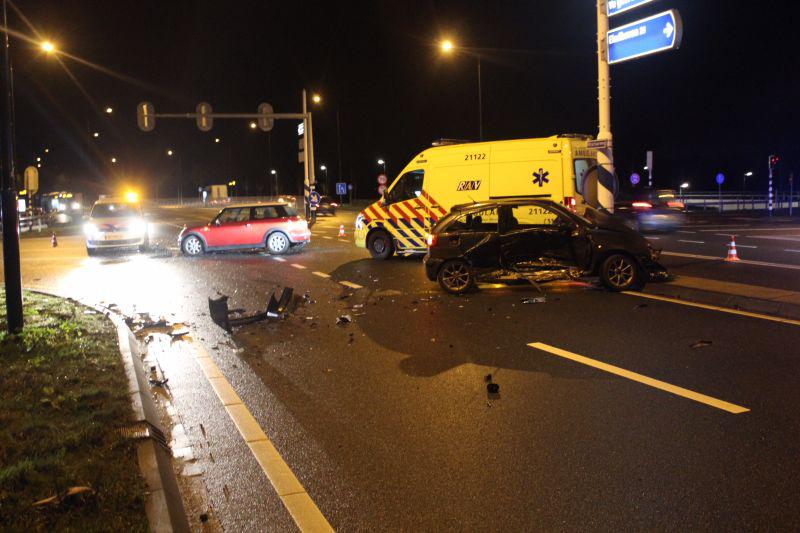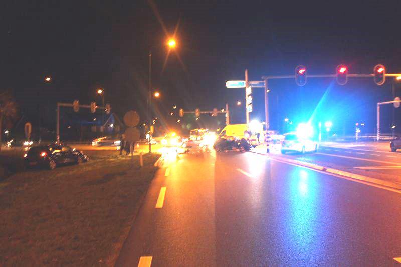 Schijndel - Een ernstig ongeval op de kruising van de Structuurweg met de Wijbosscheweg. Daar kwamen op donderdagavond 18 januari rond zeven uur in de avond drie personenauto's met elkaar in botsing. Hoe dit kon gebeuren is niet bekend. Twee voertuigen raakten ernstig beschadigd. De politie sloot de kruising voor een groot deel af, ook omdat er veel glas over de rijbanen verspreid lag. De hulpdiensten waren met enkele politievoertuigen en een ambulance aanwezig. Uiteindelijk is één persoon meegenomen naar het ziekenhuis, hij liep een hoofdwond op door het ongeval. Hoe het ongeval heeft kunnen gebeuren is niet bekend. Er kwamen meerdere bergingsvoertuigen om de voertuigen weg te slepen. Rond 20.30 uur was de weg weer vrij. (Foto's en info: Christian vd Broek)