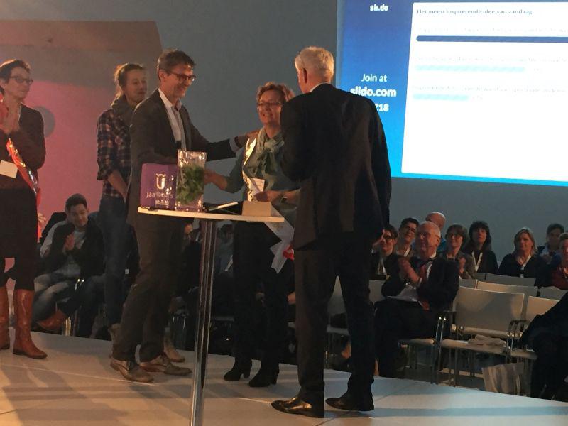 Utrecht - Laverhof wint tweede prijs voor ‘beste inspirerende idee’ op Jaarcongres Geriatrische Revalidatie Zorg. Tijdens het landelijk jaarcongres GRZ in de Jaarbeurs in Utrecht afgelopen vrijdag 26 januari, werd aan alle deelnemende organisaties gevraagd om het meest inspirerende idee dat ze hadden op te schrijven en op een prikbord te hangen. Aan het einde van de middag werden drie ideeën genomineerd voor de prijs ‘beste inspirerende idee’. Monique Janus, teammanager behandeling, was als vertegenwoordiger van Laverhof aanwezig: “Laverhof was een van deze drie genomineerden. Het publiek heeft daarna gestemd en Laverhof werd tweede met 29% van de stemmen. De credits voor deze prestatie gaan naar de werkgroep GRZ, onder leiding van Ellen van der Heijden, teammanager revalidatie en Otto Plaisier, specialist ouderengeneeskunde. Van harte gefeliciteerd. Foto ontvangen van Laverhof