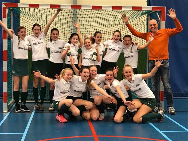 Schijndel - Na het herfstkampioenschap op het veld, eind 2017, gingen 13 van de 16 meiden van SMHC Hopbel MC3 vol enthousiasme de zaal in. Het was een spannende competitie. Uiteindelijk was twee wedstrijden voor het einde duidelijk dat de meiden niet meer ingehaald konden worden. Foto ontvangen van SMHC Hopbel