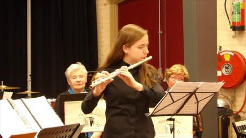 Gastoptreden De 17-jarige Joyce Hendrikx gaf een knap gastoptreden met haar dwarsfluit. Zij repeteert voor de Brabantse kampioenschappen voor blazers. Onder begeleiding van drie accordeonisten speelde zij voor een muisstil publiek Andante in C voor fluit van Mozart.Na de pauze speelde het tweede orkest Secunda. Ook hier was de variatie groot: van Hallelujah via Brabant en Het Dorp naar O Heideroosje. Bij deze nummers zong en klapte het publiek enthousiast mee. Tot slot was er een gezamenlijk optreden van beide orkesten, ook weer begeleid door de uitstekende drummer Ad Sanders. Na de Tutta La Forza Tango die door Marianne van Eeten gecomponeerd is klonk We'll meet again.