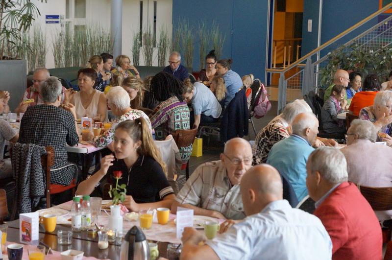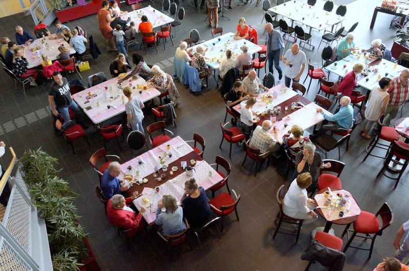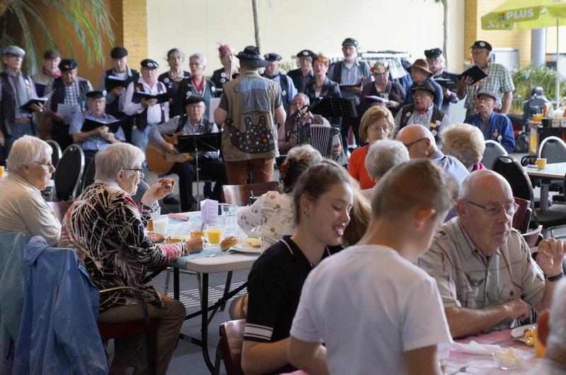Schijndel - Op de ochtend van moederdag zondag 13 mei hebben zo’n 85 mensen kunnen genieten van een heerlijk fairtrade ontbijt. De entree voor het ontbijt bestond uit een fairtrade product te schenken. Deze producten worden geschonken aan de voedselhulp Schijndel. De bijeenkomst startte met enkele woorden van Arthur Rijken, voorzitter stichting fairtrade Meierijstad, en wethouder Harry van Rooijen van de gemeente Meierijstad. De wethouder en Manon van Dinther, coördinator voedselhulp en bijzondere zorg bij Vincentius, openden vervolgens het buffet. Alle benodigdheden voor het ontbijt waren zoveel als mogelijk fairtrade, dus met het Max Havelaar keurmerk. Foto's van Arthur Rijken. Bijna het gehele ontbijt kwam van de Plus, 1 van de Schijndelse supermarkten die vele fairtrade huismerkproducten verkoopt. Vers gebakken broodjes en heerlijke eieren van de Woonboerderij waren aanwezig. Daarnaast was er het smartlappenkoor van Ome Jan voor een gezellige muzikale omlijsting.