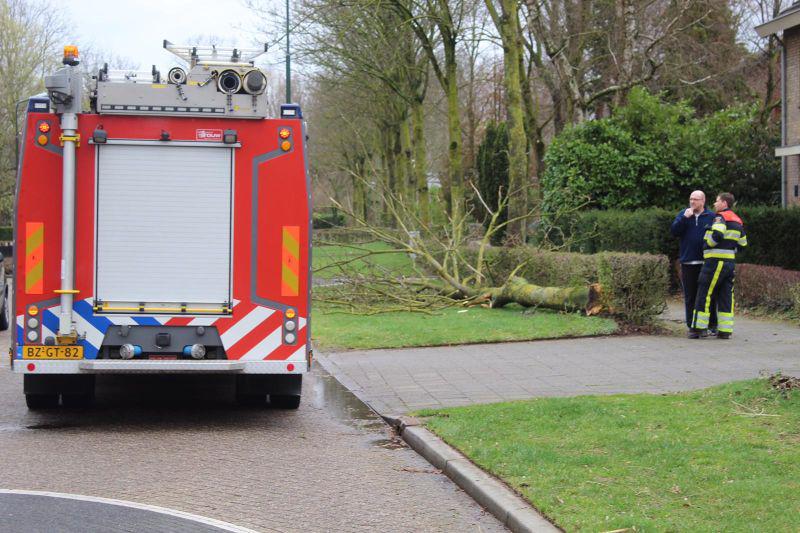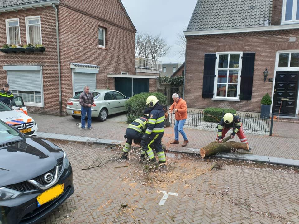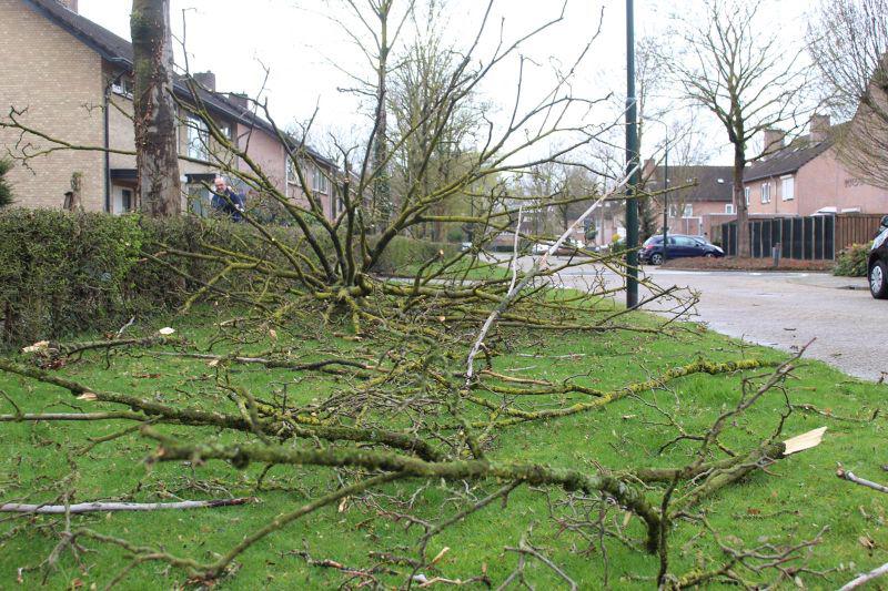 Schijndel - De stormachtige wind van gisteren heeft voor veel overlast gezorgd. Zo werd bij de buren van Zorgboerderij de Woudse Hoeve een stuk dak van de schuur geblazen. Aan de Achterste Hermalen kwam een groot deel van een boom naar beneden. Hierdoor was de weg geblokkeerd. De brandweer heeft de grote tak weggehaald. Helaas raakte hier een hek beschadigd. Op de Vicaris van Alphenstraat waaide een boom om, deels op een auto. De brandweer heeft geholpen met het weghalen van de laatste stukken van de boom; de bewoners waren zelf aan de slag gegaan met zagen. Aan de Dierenriem kwamen dakpannen naar beneden. De brandweer kon hier weinig anders doen dan de omgeving veiligstellen. Aan de Andoornstraat viel een grote boom om. Ook hier heeft de brandweer alleen de situatie veiliggesteld; de boom ligt op de groenstrook. De gemeente is in kennis gesteld. Enkele foto's onder 'lees meer'. Zaterdag zorgde de wind ook voor omgewaaide bomen aan de Gemondseweg en Leemputtenweg.