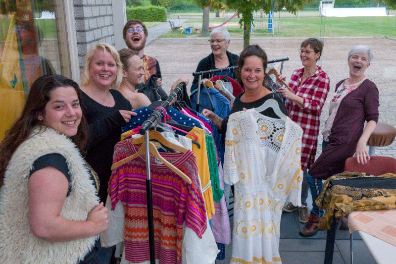 Een uitdaging bij de hippies en Dolle Mina’s is dat hun kleding perfect moet aansluiten bij het tijdsbeeld van 1969. Beide groepen hadden enorm vrije denkbeelden. Om dat beeld goed neer te zetten is de kleding heel belangrijk en dit wordt zorgvuldig samengesteld door Ans Keetels en Monic van der Heijden. Ze zijn al jaren verbonden aan de Boschwegse Toneelgroep en ieder jaar komen ze weer met geweldige creaties. De hippies en de Dolle Mina’s zijn er in ieder geval ook nu weer heel erg blij mee. En waar ze het allemaal over eens zijn is dat je veel fijner speelt als de kleding bij je past en lekker zit. ”Laat dat maar aan Ans en Monic over, dan komt het zeker goed”. En weg zijn de toneelspelers weer, want er moet ook gerepeteerd worden.