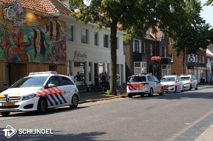 Schijndel - De politie is donderdagmiddag 25 juli rond twee uur een woning binnen gevallen zijn aan de Hoofdstraat. Het zou gaan om een bovenwoning. Dat melden meerdere getuigen in berichten met foto's aan TVSchijndel. "Met een hamer werd door iemand op het glas van de deur geslagen." en "Eerst waren er twee politiewagens, nu vier en ze gaan met meerdere agenten met schilden de woning binnen." Ook een politiehond werd ingezet. De politie bevestigt de inval. "Het ging om een melding dat er in een bovenwoning een agressieve man aanwezig zou zijn. Deze had een ruit vernield. Toen de collega’s ter plaatse waren, zijn ze naar binnen gegaan. Daar was ook een (surveillance)hond bij. In de woning troffen ze wel een man aan, maar dat bleek niet de dader. Die was in de tussentijd gevlogen. We kijken nog naar hem uit. Alles samenvattend ging het dus om een agressieve man die een ruit heeft vernield.", aldus de politie.