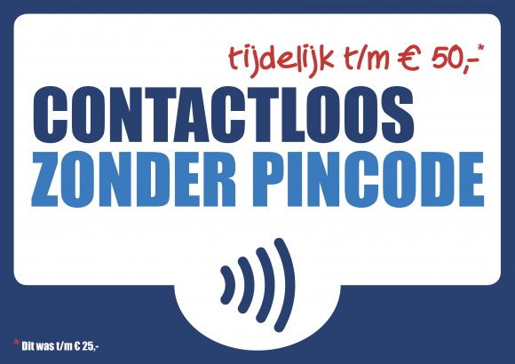 Amsterdam - Betaalvereniging Nederland maakt vandaag bekend dat tijdelijk contactloos afrekening zónder pincode opgehoogd is tot 50 euro per betaling. Consumenten kunnen vanaf deze week aan de kassa per betaling tot en met 50 euro zónder pincode contactloos afrekenen, met een bankpas, smartphone of wearable. Tot nu toe moest bij een bedrag boven 25 euro altijd de pincode op de betaalautomaat worden ingevoerd, voor een contactloze betaling met een bankpas of wearable. Deze zogeheten transactielimiet wordt nu tijdelijk verhoogd naar 50 euro. Daar hoeven consumenten en ondernemers zelf niets voor te doen, het wordt volledig automatisch ingevoerd. Klanten die contactloos betalen, hoeven voorlopig minder vaak een betaalautomaat aan te raken. Zo willen banken en leveranciers van betaalautomaten een bijdrage leveren aan de strijd tegen de verdere verspreiding van het nieuwe coronavirus.