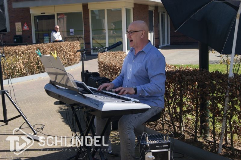 Schijndel - Onder een stralend lentezonnetje speelde Theo van Eeuwijk gisteren op de Lochtenburg. Het was er gezellig: veel mensen bleven staan kijken en luisteren, en ook op de omliggende balkons stond men te genieten. Voor meer foto's zie onsfotoboek.