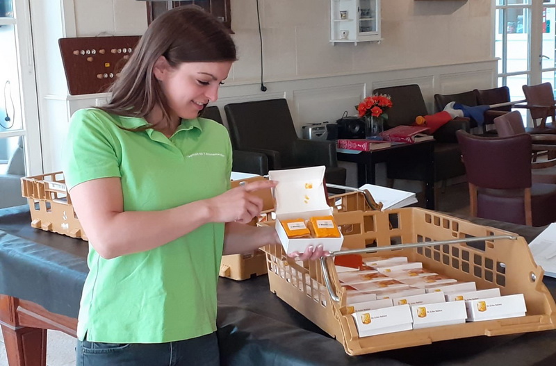 Schijndel – De chauffeurs van Zorghoeve 't Binnenveld mochten afgelopen vrijdag 25 april weer op pad om bij de cliënten oftewel bezoekers van deze Zorghoeve een attentie te bezorgen. Dit keer ontvingen alle vaste bezoekers twee heerlijke oranje tompoezen van de Schijndelse bakker Snijers, vergezeld van een nieuwsbericht over de zorgboerderij en een puzzel met koppelwoorden in het teken van Koningsdag. De bezoekers bleken het wederom erg te waarderen. Zo'n 80 adressen werden door de eigen chauffeurs bezocht, aldus zorgmanager Mariëlla Lemmens van Zorghoeve 't Binnenveld aan de Boxtelseweg in Schijndel. Eerder ontvingen de cliënten een Paasattentie en bezorgden de chauffeurs van de zorghoeve kort na de verplichte sluiting van deze zorghoeve allemaal een bosje tulpen met een persoonlijke boodschap bij alle cliënten. De cliënten worden niet vergeten. Bij Zorghoeve 't Binnenveld krijgen bezoekers een zinvolle en plezierige dagbesteding. Van maandag tot en met zaterdag een kleinschalige gemeenschap rondom dieren, tuinen (moes- en bloemen), akkerbouw, groentenwinkel en alles wat het verblijf op een boerderij zo leuk maakt.