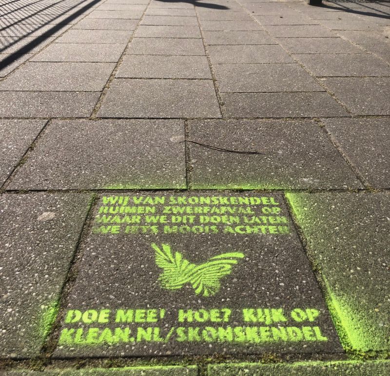 De intentie van de SCHOONfamilie was om de leerlingen en leerkrachten van het Elde College, na deze lange periode van sluiting van de school, een warm welkom te bezorgen door het Kloosterpark ‘schoon op te leveren’. En het is inderdaad heel veel schoner geworden. Zo ontzettend veel drankverpakking, sigarettenpakjes en peuken, snoepwikkels, chipszakken, scherven van bierflessen, weedzakjes en nog veel meer afval zijn uit het straatbeeld weggehaald. Toch lukte het niet om het gebied helemaal schoon op te leveren. Iedere keer dat ze weer verder wilden gaan, van waar ze gebleven waren, was er de avond ervoor opnieuw veel rommel achtergelaten. Met behulp van een krijtactie hebben ze hun intentie voor een schone leefomgeving kracht willen bijzetten. Op diverse plaatsen in en rond het Kloosterpark hebben ze ons stempel voor een schoon Schijndel achtergelaten.