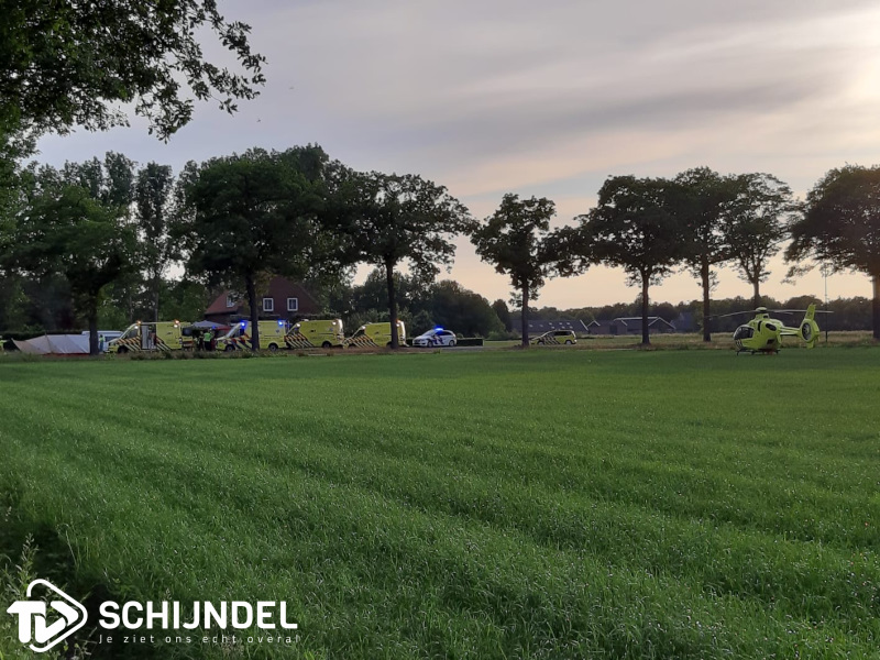Schijndel - De hulpdiensten waaronder een traumahelikopter en 5 ambulances zijn woensdagavond omstreeks 20:00 uur massaal uitgerukt voor een ongeval aan de Rooiseweg. Bij het ongeval waren een busje en een brommer betrokken. De persoon op de brommer raakte zwaargewond en ook de bestuurder van het busje is naar het ziekenhuis gebracht. Over de oorzaak van het ongeval is nog niets bekend. De weg is tijdelijk afgesloten, dit voor het politieonderzoek. Kort na het ongeval werden ook de hulpdiensten gealarmeerd voor een reanimatie aan het Plein in Schijndel. Ambulances en politie vertrokken met spoed vanaf de Rooiseweg direct naar deze locatie. Foto's en info Christian van den Broek.