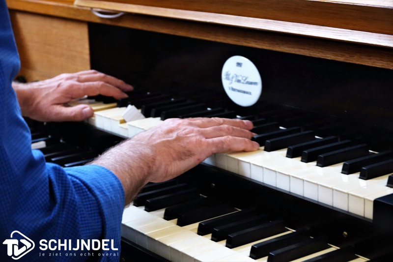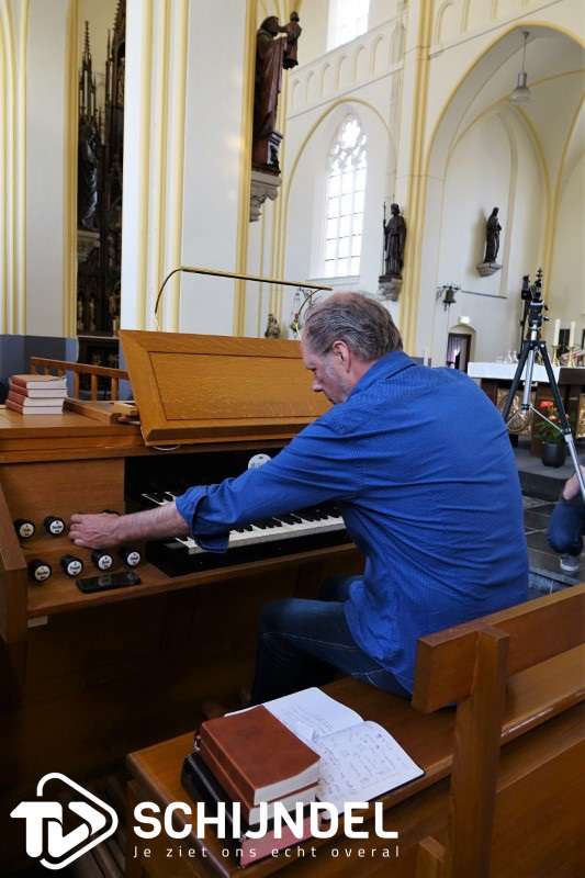 Schijndel - Het was een bijzonder concert, gisteravond in de Servatiuskerk, waar organist Bart van Dongen, acte de prescence gaf. Bart, geboren in het plaatsje Zeeland woont al jaren in 's-Hertogenbosch en bewandeld zijn hele leven al het muzikale pad. Het bijzondere van dit concert was dat hij deze avond twee orgels bespeelde, zowel het kleine orgel beneden als boven op het grote Smits orgel. Wat hij met zijn muziek doet is eigenlijk de orgels gebruiken als een soort synthesizer. Eerst bespeelde Bart het orgel beneden in de kerk. Daarbij zet hij het onderste klavier en de baspedalen vast met stukjes papier en gewicht van kerkboeken. Door deze toetsen vast te zetten had hij zijn handen vrij om op het bovenklavier te spelen. Na een aantal klanken te hebben opgebouwd en te hebben vastgezet ging hij naar boven om daar het zelfde te doen. Door middel van een camera en een beamer konden de luisteraars beneden in de kerk het allemaal prima volgen. Bekijk ook onze videobeelden. Meer foto's kunt u zien in ons fotoboek.