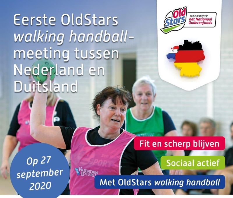 Schijndel - Het OldStars Sport aanbod groeit en wordt steeds populairder in het land. Ook in Schijndel/Meierijstad zijn er maar liefst 4 OldStars sportvormen het afgelopen jaar opgestart. Ook bij onze Oosterburen is er vraag naar OldStars. Inmiddels zijn de eerste Duitse initiatieven opgestart met OldStars walking handball. Het Nationaal Ouderenfonds, NHV, Hellas Handbal, Tus Hertha Hetzerath en het Schijndelse HV Zephyr hebben daarom het initiatief genomen om een uitwisseling te organiseren tussen Nederlandse Walking Handballers en Duitse Walking Handballers. Dit vindt plaats op zondag 27 september 2020 in sporthal Dioscuren Bunderstraat 6B te Schijndel.