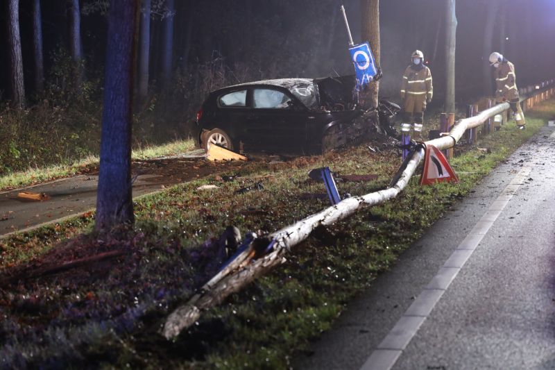 Brandweerlieden veegden de rijbaan schoon terwijl de wegbeheerder, provincie Noord-Brabant de boom inspecteerde. Door de harde klap was de boom op hoogte gebarsten. De boom zal later grondig geïnspecteerd worden en indien nodig omgedaan worden. Hoe het ongeval kon gebeuren is niet bekend, wel is het voertuig vermoedelijk eerst rechts van de weg en vervolgens links volledig van de weg geraakt. Het nam hierbij enkele verkeersborden en een houten geleiderail mee. Over de ernst van de opgelopen verwondingen is niets bekend. Foto's en informatie: Persburo Sander van Gils