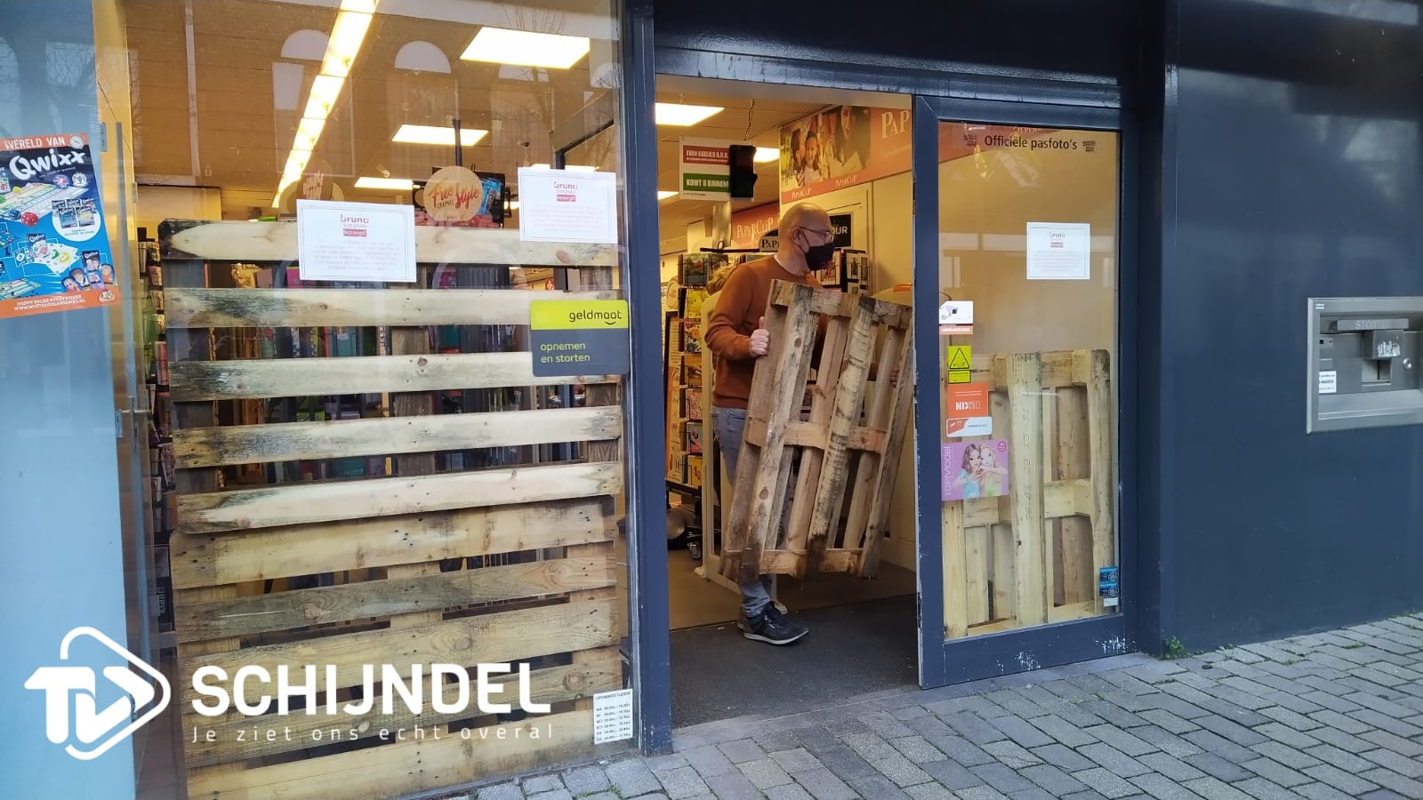 Schijndel - Bizarre taferelen deze middag in Schijndel. Naar aanleiding van diverse geruchten over ongeregeldheden, zijn ondernemers massaal begonnen met het dichttimmeren dan wel leeghalen van de etalages winkels. TVSchijndel liep een rondje door het centrum en zag bij zeker de helft van de winkels hout voor of binnen tegen de ruiten. Ook zijn sommige ramen beschermd met plastic. De politie was zichtbaar aanwezig, met de auto en op de motor. Ongeruste bewoners van boven de winkels spraken agenten en ondernemers aan. Wim Eijkemans (eigenaar van de PLUS) laat weten dat er is afgesproken dat de supermarkten om 17.00 uur sluiten. "Maar sommige ondernemers sluiten nu al tijdens het dichttimmeren." De gemeente en politie waren sinds het begin van de middag op de hoogte van geruchten over ongeregeldheden. Of er vanavond extra maatregelen of extra inzet van politie volgt, is niet bekend. Update 16.50: Meerdere sportverenigingen hebben de trainingen voor vanavond afgelast.