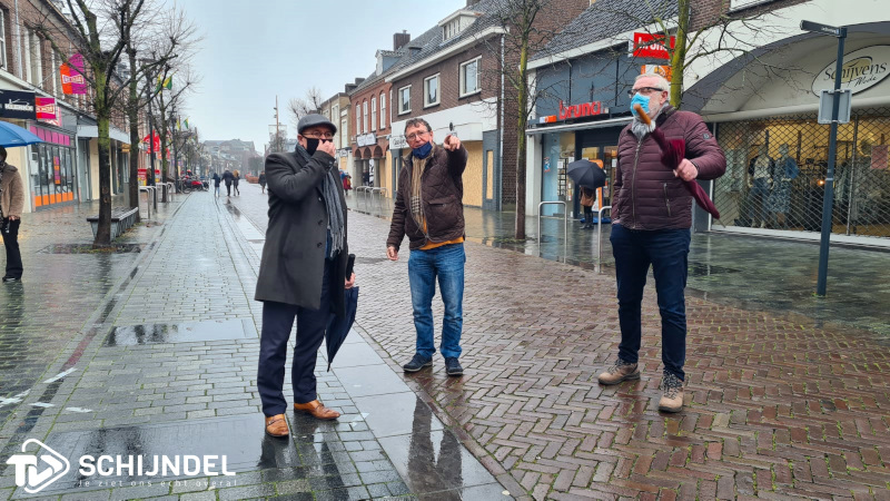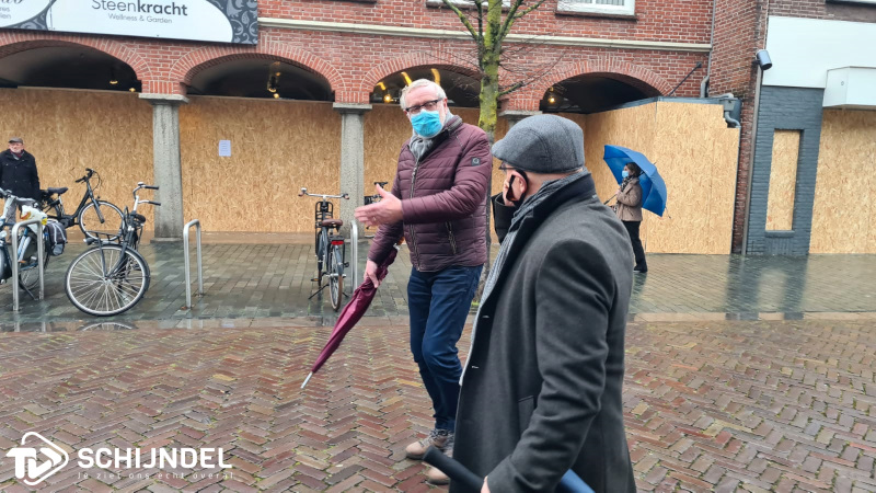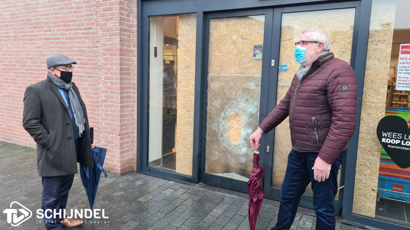 Schijndel - Woensdagmiddag bracht burgemeester Van Rooij een bezoek aan Schijndel. Hij wilde een kijkje nemen in het centrum, na de dreiging van gewelddadige rellen van gisteren. Samen met Harrie van Herpen van het Citymanagement liep hij door het dorp. Hij sprak met verschillende ondernemers, o.a. van de HEMA. Die winkel werd gisteren bekogeld met een brandbom, waarna er brand uitbrak. Veel winkeliers hebben veiligheidshalve besloten om tot en met het weekend hun etalages dichtgetimmerd te laten. Citymanagement laat weten dat er is geconcludeerd dat gemeente en de politie gisteravond goed werk hebben geleverd. Er lag een noodverordening klaar, die zou worden ingezet als politie aangaf dat de situatie te dreigend werd. Inmiddels is besloten om een beveiligingsbedrijf in te huren dat de gemeente en politie ondersteunt.