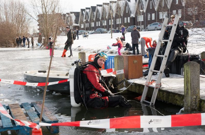 Schijndel - Zondag 14 februari is een aantal leden van Duikteam Schijndel gaan ijsduiken. Drie leden hebben daarmee de module ijsduiken behaald. Het was alweer negen jaar geleden dat de club een ijsduik had georganiseerd, dus het was een feest voor de duikers om weer onder het ijs te mogen duiken. Vooraf was een volledig draaiboek in elkaar gezet. Daarnaast is er ook rekening gehouden met de coronaregels die nu gelden. Voor het ijsduiken moeten de duikers theorieles volgen. Het is veel anders duiken dan normaal. Dit omdat je met een touw vastzit aan de seinmeester. De seinmeester heeft het touw vast en geeft seinen door aan het touw te trekken. Zo weten de duiker en de seinmeester van elkaar of het goed gaat en welke kant ze op kunnen zwemmen. Er is dus altijd contact met elkaar en de duiker kan daardoor altijd door middel van het touw het gat vinden waar hij er weer uit kan. (Foto’s gemaakt door Geert-Jan Doms)