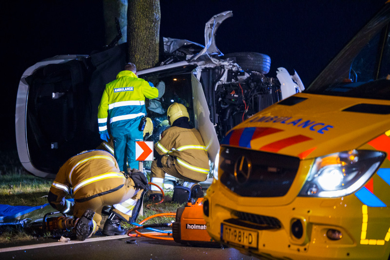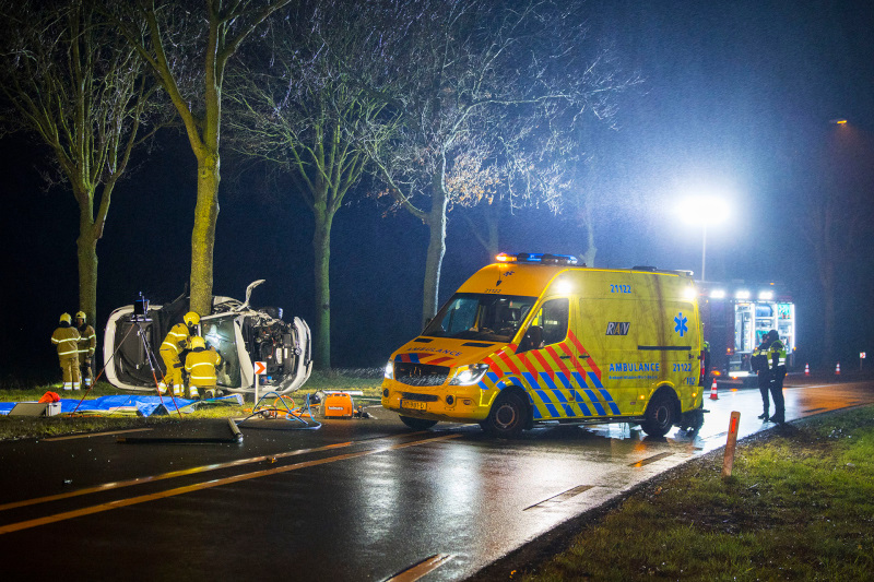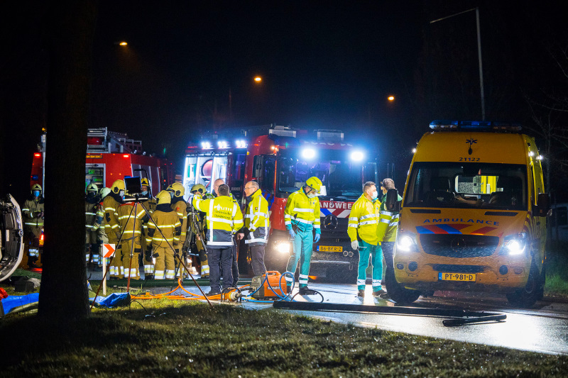 Schijndel - Vanwege een ernstig verkeersongeval op de Structuurweg in Schijndel is deze weg woensdagavond laat, tot diep in de nacht, volledigafgesloten geweest tussen de Boschweg en de Zwembadweg. Rond 23.00 uur botste een personenauto tegen een lantaarnpaal en kwam vervolgens op zijn zijkant tegen een boom tot stilstand. De hulpdiensten rukten massaal uit, maar alle hulp kwam voor beide inzittenden te laat. Wel werd een hondje levend uit het voertuig gehaald en overgedragen aan de dierenambulance. Hoe het tragische verkeersongeval heeft kunnen gebeuren wordt door de politie onderzocht, ter plaatse werd de ongevalslocatie uitgebreid in kaart gebracht. Een bergingsbedrijf heeft de zeer zwaar beschadigde personenauto afgevoerd, waarna rond 3.00 uur de weg weer volledig kon worden vrijgegeven. De politie laat weten dat de slachtoffers een vrouw van 40 uit Schijndel en een man van 45 uit Den Bosch zijn.