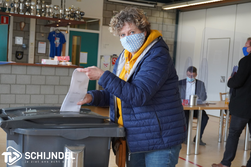 Schijndel - Zojuist zijn de stembureaus in Schijndel en de rest van Nederland gesloten en is het wachten op de uitslag van de Tweede kamer verkiezingen. Onze fotograaf maakte een rondje langs de verschillende stembureaus in Schijndel, de foto's zijn te vinden in het fotoboek. Om het risico op verspreiding van het coronavirus tijdens deze verkiezing zo klein mogelijk te maken, zijn er op ieder stembureau maatregelen genomen. Daarnaast was het dit jaar ook mogelijk om te stemmen in een drive-in met de auto op de gemeentewerf in Schijndel en in het Jan Heestershuis, hier konden kwetsbare kiezers al vanaf afgelopen maandag terecht. Eerder deze avond, om 19.10 uur bedroeg het opkomstpercentage van Meierijstad 57,11%.