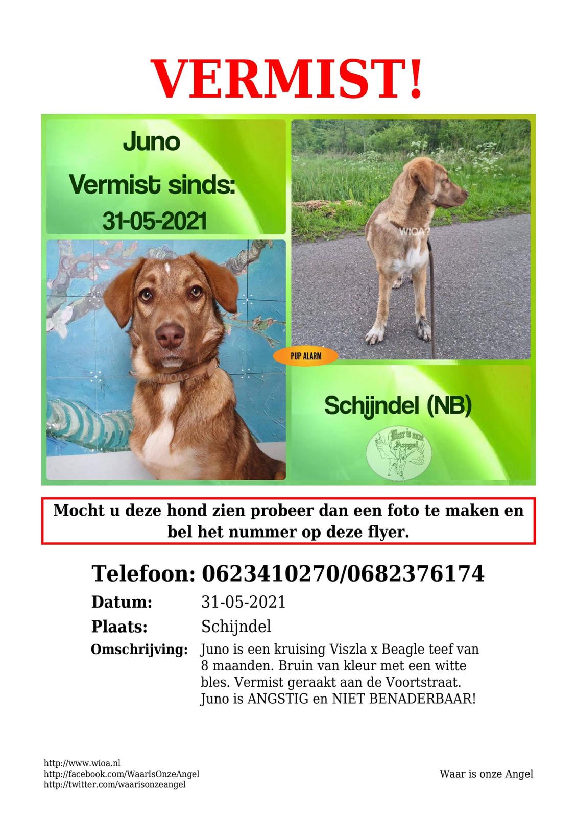 Schijndel - Gisteren las u op deze website het bericht dat Juno was weggelopen vanaf een terras bij De Glazen Boerderij. Er kwam een duif voorbij en die vond ze dusdanig interessant dat ze niet meer luisterde naar haar baasjes. Ze werd nog gezien op de Voortstraat, maar was daarna enkele uren zoek. Gisteravond rond 23.00 uur vond Juno het wel mooi geweest en stond ze gelukkig weer voor de deur en konden haar baasjes haar weer in hun armen sluiten en heerlijk met haar knuffelen. Het gaat goed met Juno. Iedereen bedankt voor het delen van het bericht.