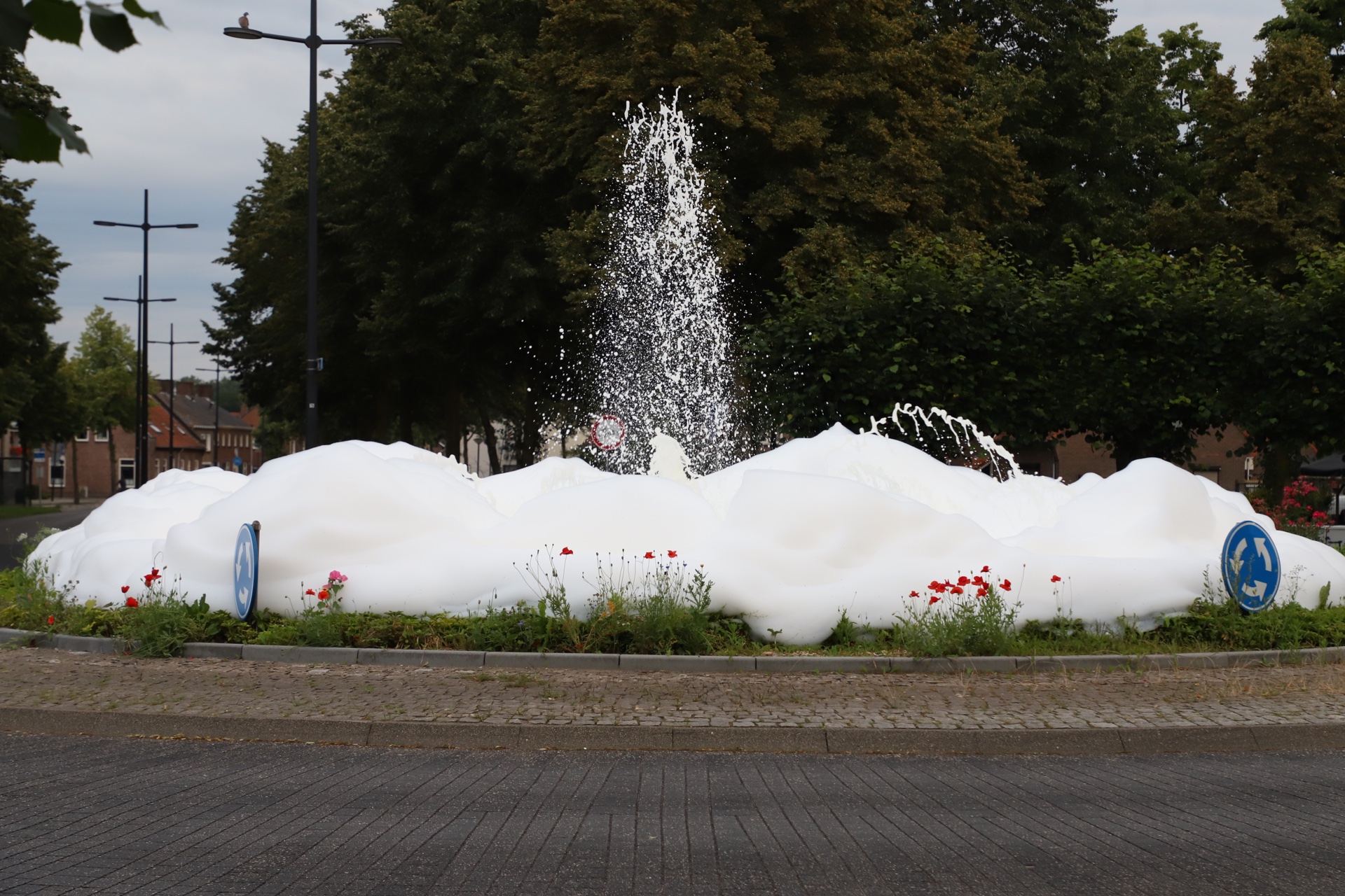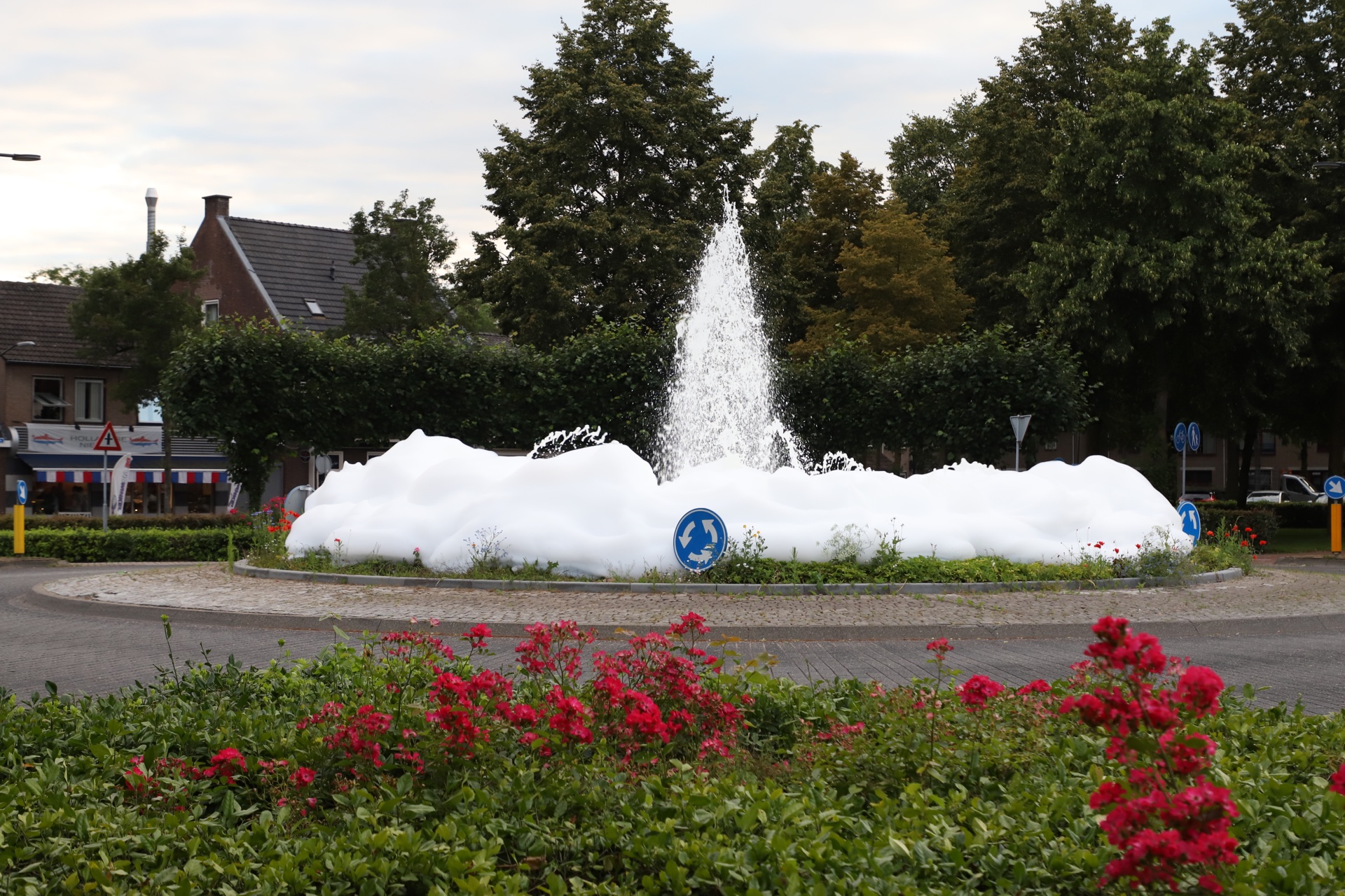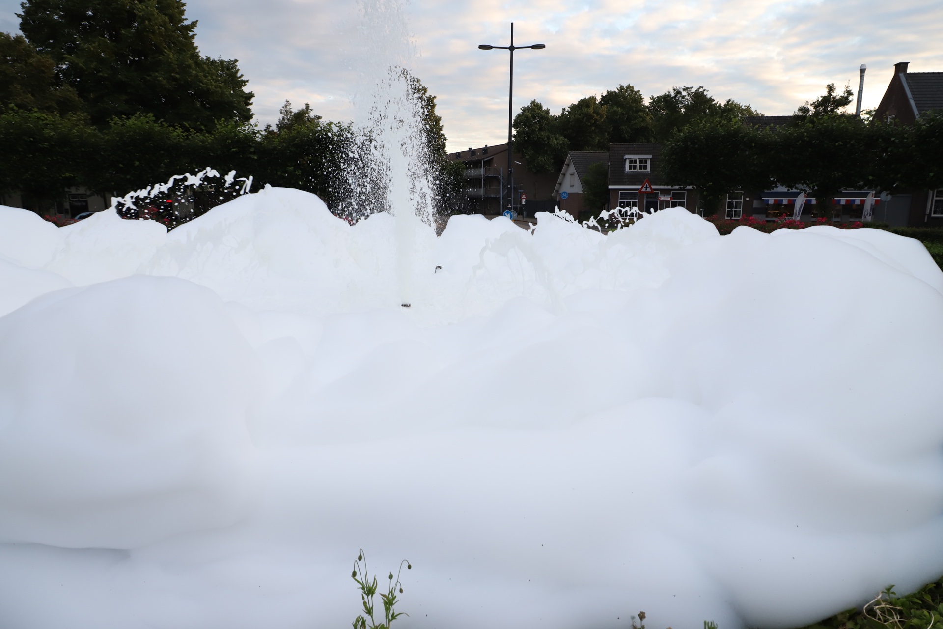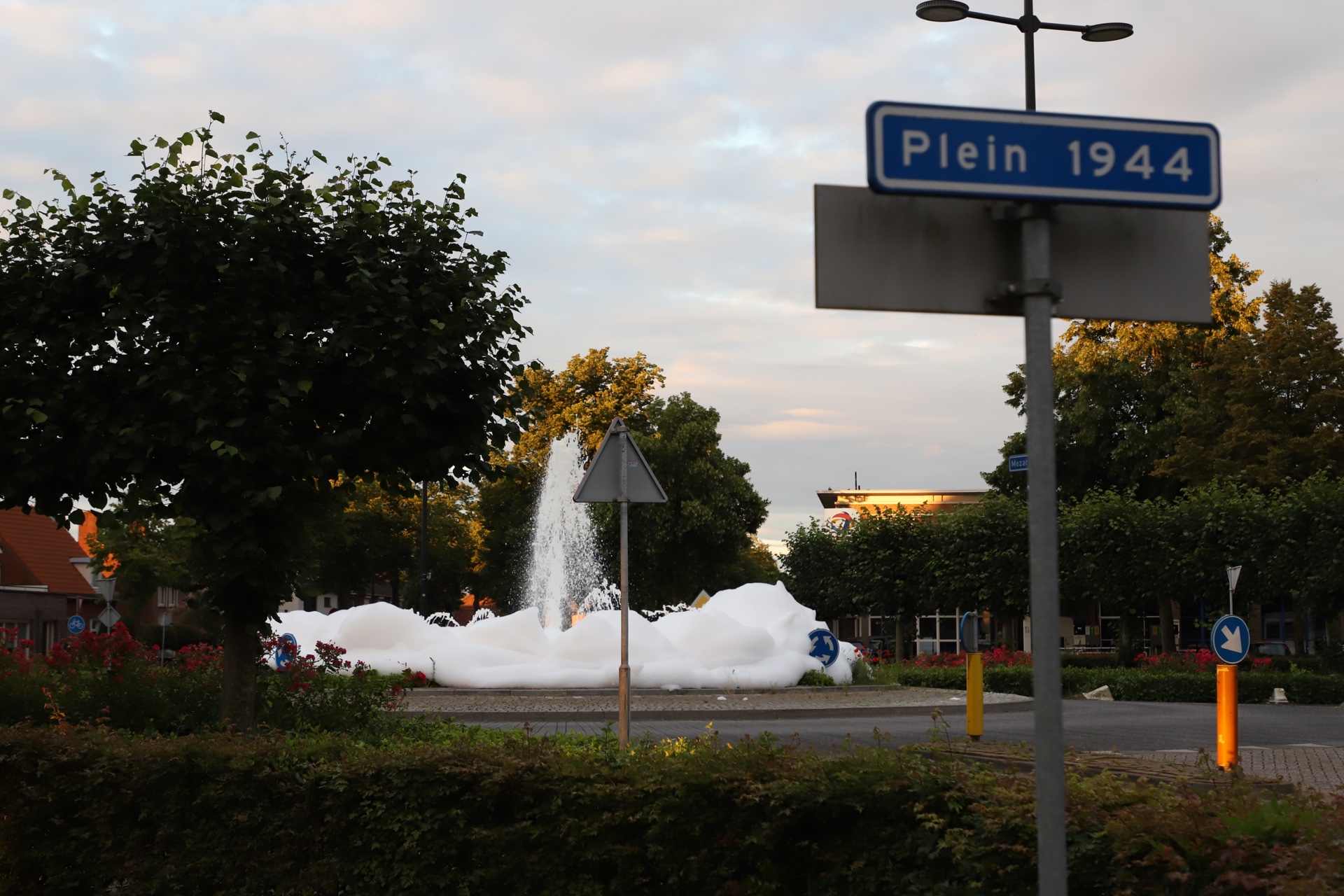 Schijndel - Enkele automobilisten keken maandagavond vreemd op toen zij zagen dat de rotonde aan het Plein 1944 in Schijndel wit kleurde van schuim. Onbekenden hebben de fontein vermoedelijk voorzien van een berg zeep, wat resulteert in een knal witte en schuimende rotonde. Het is niet de eerste keer dat deze fontein gebruikt wordt voor deze kwajongensstreek, zo is ook te merken aan passanten die er niet meer van op lijken te kijken. Vorige maand werd de fontein aan de Boschweg ook 'getroffen'. Vooralsnog ondervind het verkeer geen hinder van de streek, het schuim is vooralsnog beperkt tot de rotonde en nog niet op de rijbaan.
