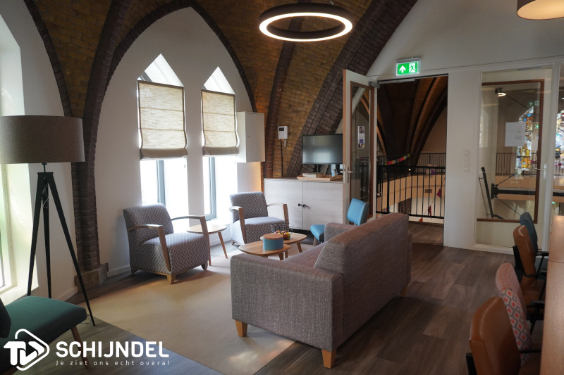 Schijndel- Toen er nog volop gebouwd werd nam TVSchijndel al een kijkje in de voormalige kerk aan de boschweg. Eind juni hebben de bewoners hun intrek genomen in de appartementen. Vrijdag 24 september j.l. werd ‘de Rozenkrans’, zoals het gebouw nu genoemd wordt, officieel geopend door wethouder Rik Compagne samen met een bewoonster. De wethouder noemde de kerk een voorbeeldproject omdat het erfgoed behouden is gebleven en er ondertussen toch aan duurzaamheid is gedacht. Zo ligt het dak van de kerk vol met zonnepanelen. Architect Steven Woudstra en projectontwikkelaar Jeroen Bestebreurtje werden tijdens de bedankjes nog extra in het zonnetje gezet voor hun creativiteit en het denken in mogelijkheden.