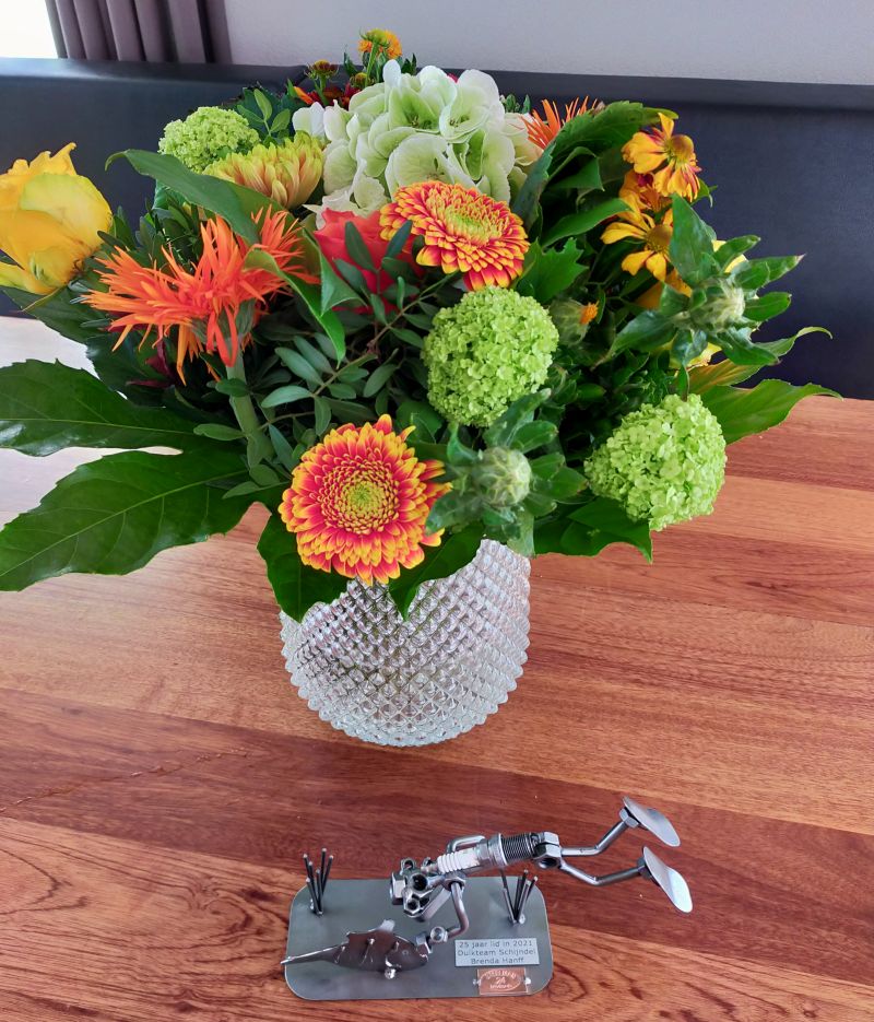 Schijndel - Zondag 26 september had Duikteam Schijndel tijdens de algemene leden vergadering twee leden in het zonnetje gezet. Het gaat om Hennie en Brenda. Beide zijn ze al 25 jaar lid en zeer actief bij de club. Brenda en Hennie hebben allebei een mooie bos bloemen gehad en een mooi beeldje van een duiker. Hennie is vanaf het begin actief en Brenda was vanaf haar twaalfde levensjaar begonnen met snorkelen. Beiden zijn nog steeds zeer betrokken bij de club.