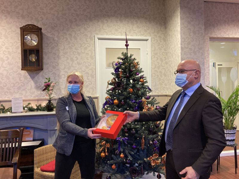 Meierijstad - Burgemeester Kees van Rooij bezocht gisteren diverse zorgcentra in Meierijstad. De Coronamaatregelen doen weer een groot beroep op de zorgmedewerkers. De burgemeester heeft veel respect voor de manier waarop zorgmedewerkers er opnieuw de schouders onder zetten. Met zijn bezoek wilde hij hen graag allemaal een hart onder de riem steken. Die betrokkenheid werd zeer gewaardeerd. In de sfeer van Sinterklaas ontvingen alle zorgcentra in Meierijstad namens de gemeente banketstaven. Een steuntje in de rug voor de zorgmedewerkers en bewoners, met de boodschap: ‘Petje af, houd vol!’ Meerschot Sint Oedenrode![]() |
