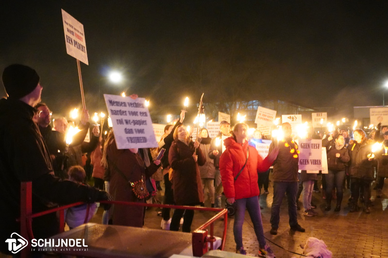 Schijndel - Zaterdagavond hield een grote groep mensen een coronademonstratie in Schijndel. De groep verzamelde rond zeven uur op de Markt bij de fontein en trok met fakkels en demonstratieborden via onder andere de Hoofdstraat naar het eindpunt 't Sepctrum. Onderweg werd muziek afgespeeld door een privé voertuig als brandweerwagen, deze reed voorop aan de stoet. Op social media werd bekend dat volgende week zaterdag om 19.00 uur weer een fakkeltocht gehouden zal worden. Enkele foto's en een korte video zijn te vinden onder "lees meer".