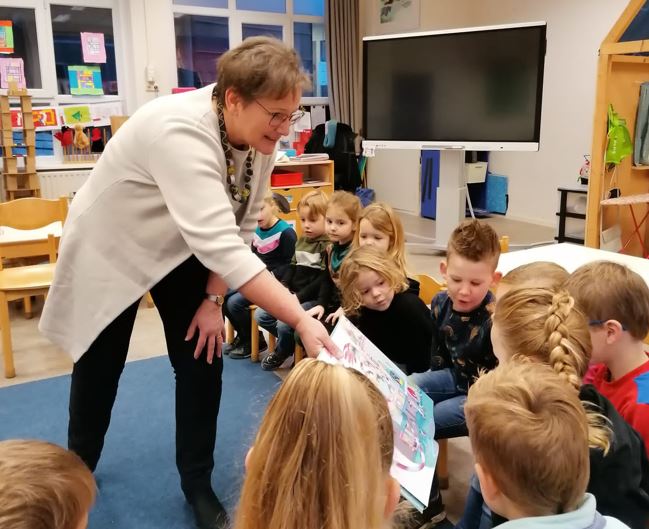 Meierijstad - Van 26 januari tot en met 6 februari vinden de Nationale Voorleesdagen 2022 plaats. Doel van de Nationale Voorleesdagen is het stimuleren van voorlezen aan kinderen (0-6 jaar) die zelf nog niet kunnen lezen of net het lezen hebben geleerd. (Voor)lezen is goed voor je woordenschat, spelling en tekstbegrip. Dit jaar staat het boek ‘Maar eerst ving ik een monster’ van auteur Tjibbe Veldkamp en illustrator Kees de Boer centraal. De burgemeester en wethouders van Meierijstad gaan tijdens de Nationale Voorleesdagen op verschillende basisscholen en kinderopvanglocaties in Meierijstad voorlezen. Vandaag las wethouder Coby van der Pas met veel plezier voor aan de kinderen van groep 2 en 3 van basisschool de Regenboog in Wijbosch.