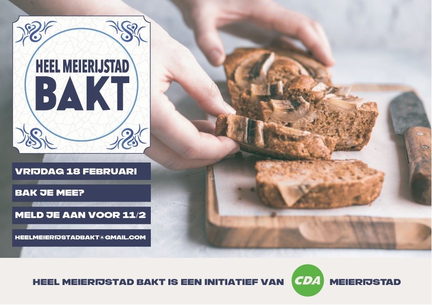 Meierijstad - Wie verdient iets lekkers? Eten maken en delen verbindt, vooral als het een heerlijke taart of cakeje zijn. Met heel Meierijstad bakt roept het CDA hobby-bakkers op om op vrijdag 18 februari een mooie taart, lekkere cake of een ander baksel te maken en daarmee zoveel mogelijk mensen, jong en oud, te bereiken. Wie zet jij in het zonnetje? Wie verdient volgens jou iets extra’s, een schouderklopje of een steuntje in de rug? Je mag zelf vertellen voor wie het is en ook graag waarom die persoon het verdiend. Een mantelzorger, een hardwerkende zorgverlener, die vrijwilliger die altijd voor iedereen klaarstaat, een eenzame senior of die jongere die door corona veel leuke dingen moest missen. Het kan om één persoon gaan, maar ook een groepje mensen zijn. En vindt je het leuk om je recept te delen? Stuur dan je recept naar onder vermeld mailadres dan worden alle recepten op Facebook en Instagram gepubliceerd. Met Heel Meierijstad Bakt vraagt het CDA inwoners op vrijdag 18 februari iets lekkers te bakken voor iemand die het naar jouw mening verdient. Een mooie taart, lekkere cake of een ander baksel van je allerlekkerste recept.