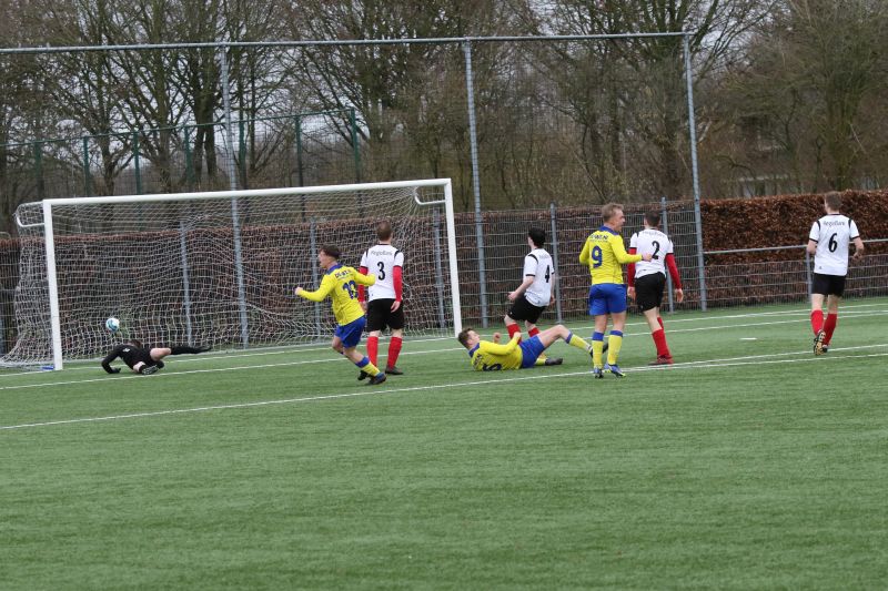 Schijndel - Een zuivere hattrick van Brent Blummel en een bijzonder doelpunt van keeper Jarne Gordijn waren de hoogtepunten van de wedstrijd tegen DVG. Ruim een uur na afloop van de zevenklapper pakte Schijndel/DE WIT ook de eerste periodetitel. Al met al een mooie hervatting van de competitie. Vanwege de overvloedige regenval week Schijndel/DE WIT uit naar het aanpalende kunstgrasveld om de eerste wedstrijd te spelen na een gedwongen pauze van drie maanden. Schijndel/DE WIT speelde haar laatste wedstrijd begin november 2021 en mocht de competitie hervatten met een inhaalwedstrijd tegen DVG. Een tegenstander waar Schijndel/DE WIT sinds mensenheugenis in competitieverband niet tegen heeft gespeeld.