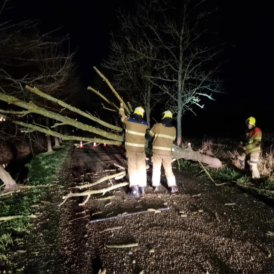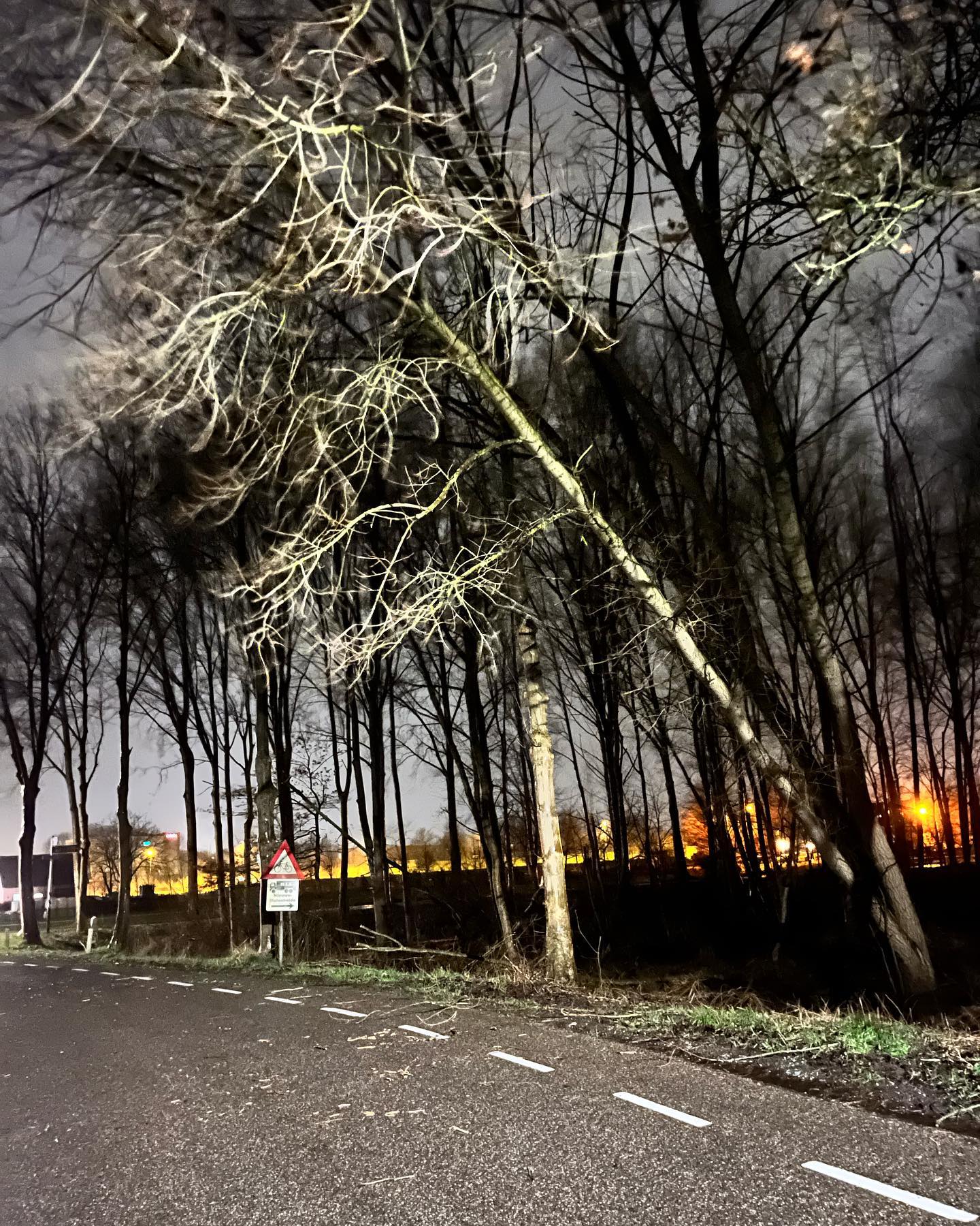 Schijndel - Na storm Dudley en Eunice trok zondagavond storm Franklin over het land. De brandweer van Schijndel kreeg ook nu weer meldingen omgewaaide bomen aan de Steeg, Martemanshurk en de Langstraat. Daar reed een auto onder een omgevallen boom door, wat voor veel schade zorgde. Er raakte wonder boven wonder niemand gewond. Aan de Steeg stond ook een boom op omvallen. Daar kon de brandweer weinig betekenen, de gemeente werd in kennis gesteld en de politie sloot de weg af. Dat gebeurde ook aan de Schijndelseweg. Daar stonden ook meerdere bomen op omvallen. Ook vandaag is het onstuimig en het KNMI heeft weer code geel afgegeven voor zeer zware windstoten.Deze chauffeur had mazzel. Auto wel behoorlijk schade, maar hij reed onder de takken door i.p.v. vol tegen #omgewaaide #boom.