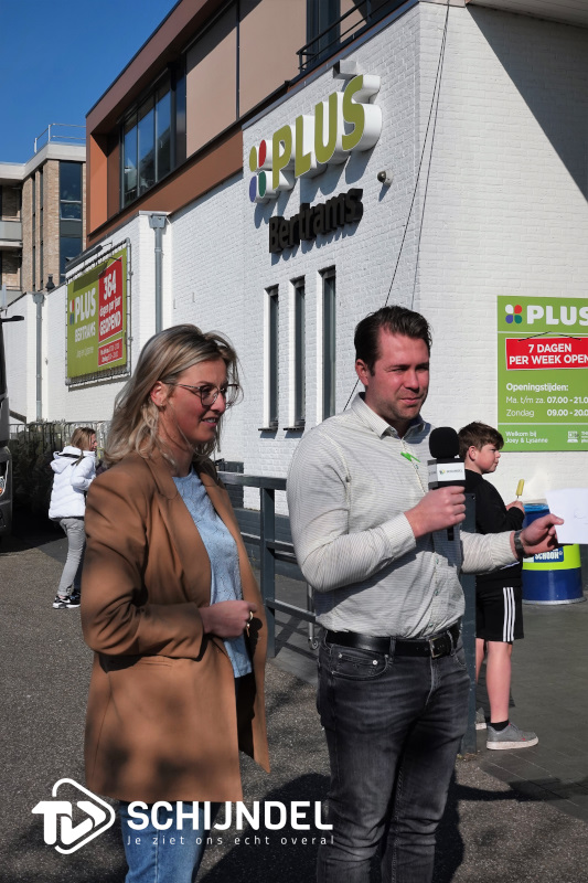 Vanochtend kwamen ’t Kwekkeveld en de Vossenberg de eerste buit aanbieden bij Plus Bertrams. In een lange stoet liepen de leerlingen van groep 7 en 8 met 19 enorme plasticzakken vol met lege flessen het hele dorp door. Elke zak moest met minstens 4 kinderen gedragen worden. Geklaagd werd er niet, iedereen had dit er graag voor over. Joey en Lisanne rondden het statiegeldbedrag ruim naar boven af en toonden buiten de cheque met het bedrag van €1200,-.