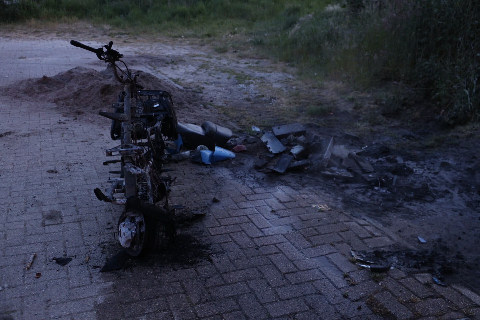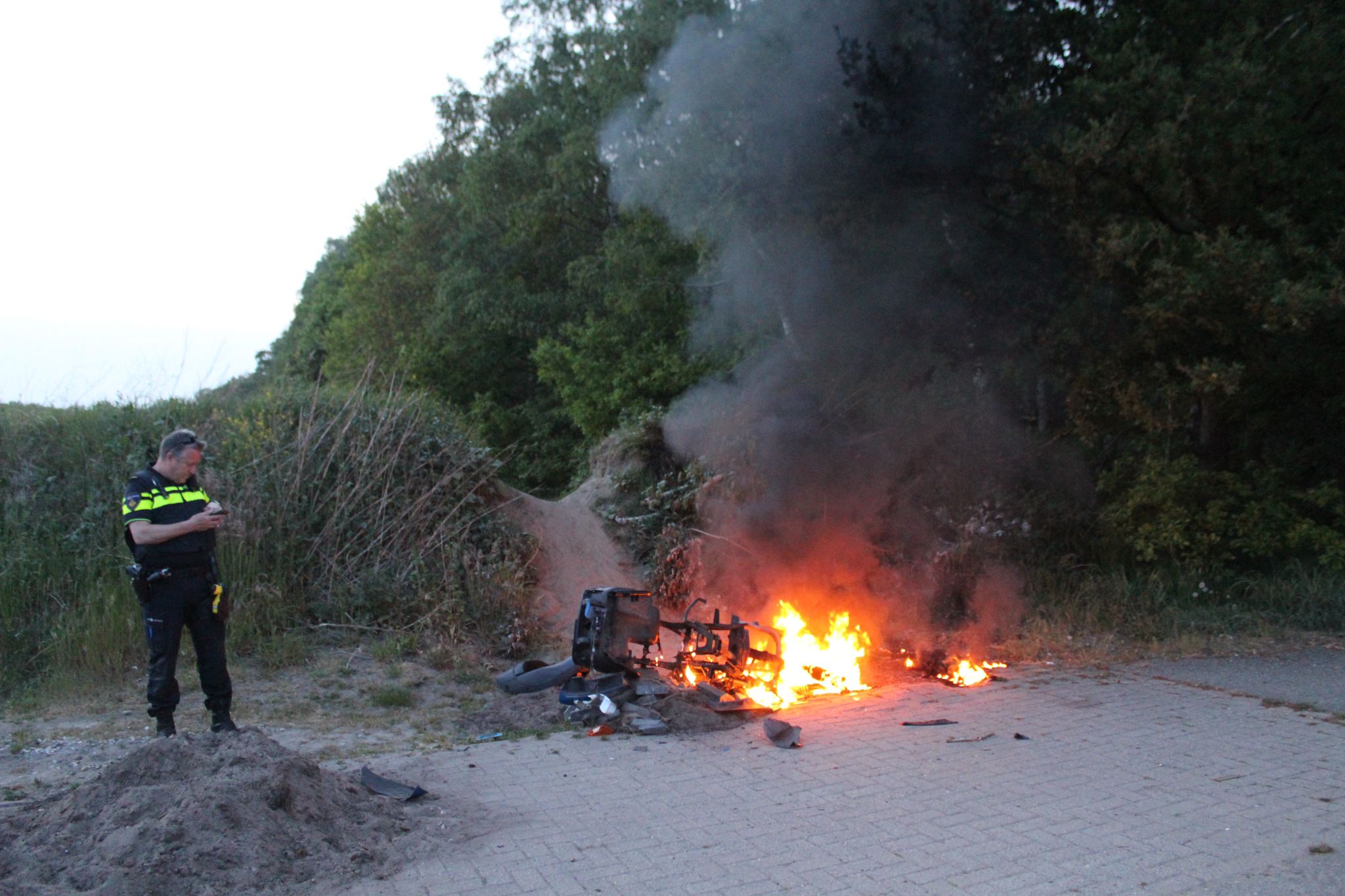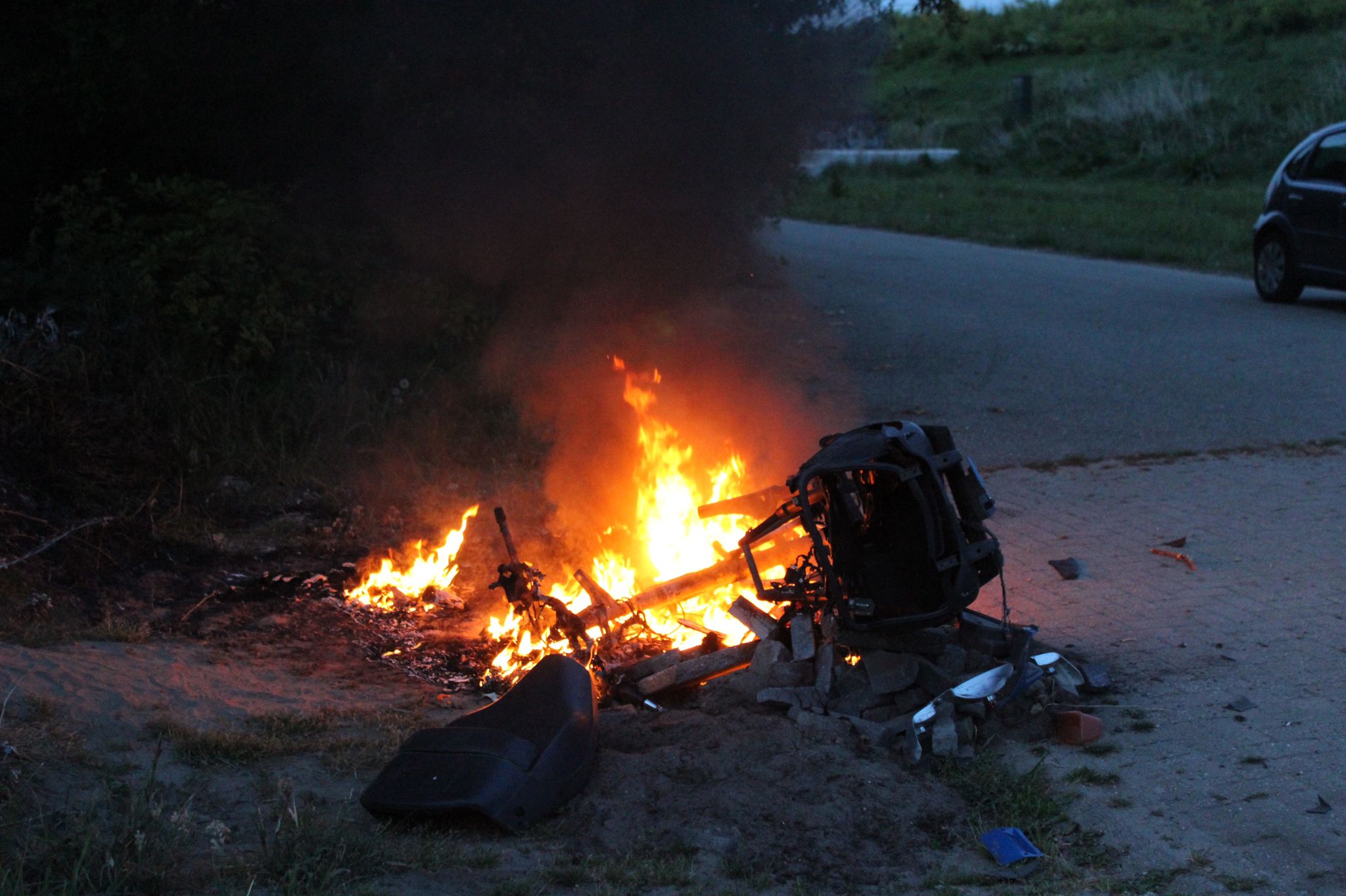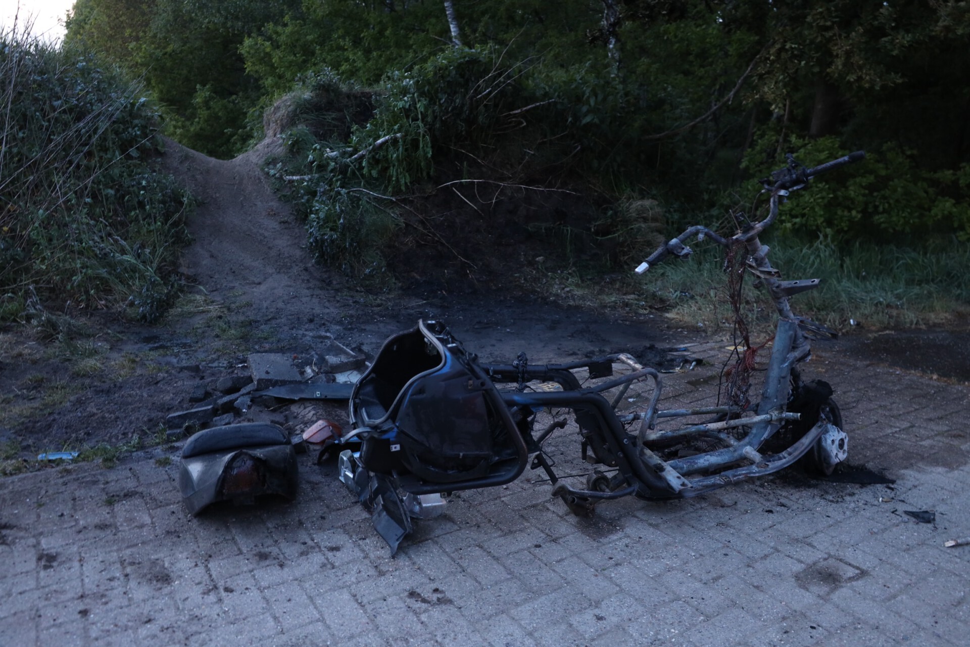 Schijndel - Aan de achterzijde van de oude vuilstort De Vlagheide aan de gelijknamige straat is maandagavond een scooter afgebrand. Hoe de scooter daar kwam, en hoe de brand is ontstaan is niet bekend. De scooter stond in lichterlaaie en is geblust door de brandweer. Omdat ook de berm vlam vatte werd ook een waterwagen ter plaatse gestuurd, echter bleek die niet meer nodig. Nadat het vuur gedoofd was keerde zowel de politie als de brandweer terug, de afgebrande scooter bleef achter. Info en foto's: Persburo Sander van Gils