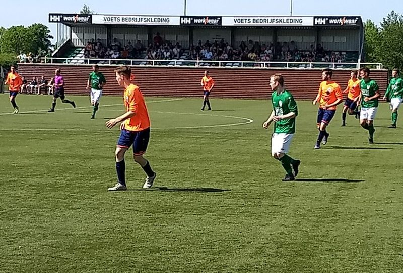 Schijndel/DE WIT drong meteen aan en zette de Dungense verdediging onder druk. Met als gevolg dat er veel onzekerheid in de verdediging van Den Dungen sloop, waar Schijndel/DE WIT in de 17e minuut van kon profiteren. Een verdedigingsfoutje werd onmiddellijk door Marc Onwezen met een mooi afstandsschot afgestraft en de 0-1 stond op het scorebord. Dat er in deze fase van de wedstrijd meer in zat was duidelijk. Tien minuten later liet de verdediging van Den Dungen zich opnieuw verrassen door de prachtig solerende Bart de Wit. Na drie spelers op snelheid gepasseerd te hebben produceerde Bart nog een hard schot dat onhoudbaar achter doelman Thies Kooijmans in het doel verdween: 0-2. En daarmee was het in het eerste bedrijf nog niet gedaan. Opnieuw tien minuten later was het Thomas Jan van Raaij die een vrije trap van Stan Guns fraai met het hoofd afrondde en de ruststand op 0-3 bracht.