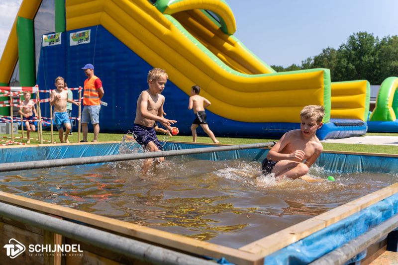 Schijndel - Dit weekend vindt de Schijndelse Zeskamp weer plaats op sportpark “De Molenheide”. Zaterdag 4 juni was de dag voor de enthousiaste jeugd van 5 tot 16 jaar. De opening van deze 10e editie vond plaats op zaterdagmiddag om 13.15 uur. Aan deze Jeugdzeskamp deden dit jaar 19 teams mee. De deelnemers moesten diverse spelelementen uitvoeren om punten te scoren voor de overwinning. Springkussens . behendigheidsspellen en waterbakken moesten worden getrotseerd. De avond werd weer afgesloten met een playbackshow. Het warme weer werkte deze dag volop mee. De resultaten van de jeugdzeskamp zijn te vinden onder 'lees meer'. Kijk naar meer foto's in ons fotoboek.