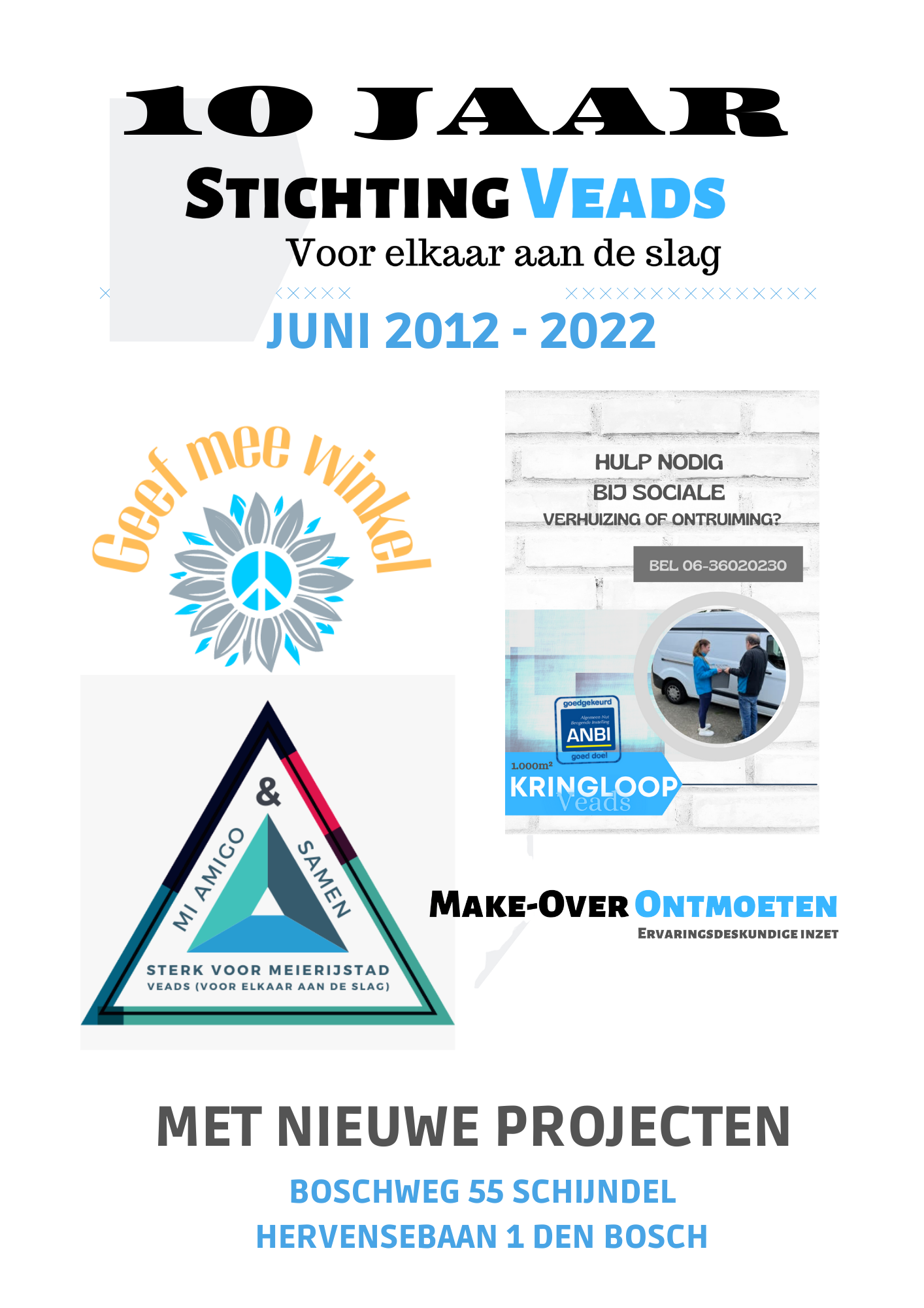 Wist je dat stichting Veads een 'Geef Mee' winkel heeft geopend? Dat er een Make-over kledingbank is opgezet? Dat mensen met een klein budget en weinig vangnet tegen een redelijke prijs uw sociale verhuizing of ontruiming kunnen regelen door onze vrijwilligers?