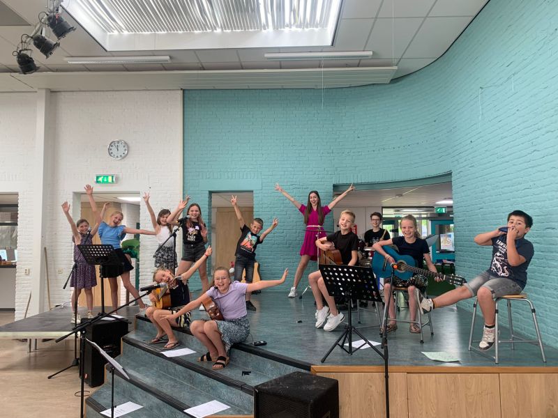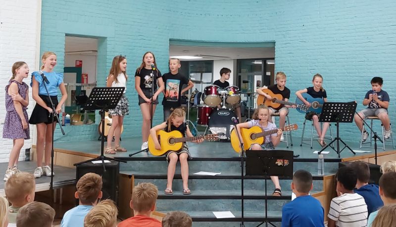 Schijndel - De EBC Noord schoolband trad vrijdag 15 juli voor het eerst op. Bij EBC Noord is een heuse schoolband opgericht sinds september door hun muzikale juf Floor van Uittert. Leerlingen van ‘t Kwekkeveld en de Vossenberg mogen zich aansluiten bij de band. Elke vrijdagmiddag repeteren ze op school. Vrijdag 15 juli mochten ze optreden voor publiek. Het was een gezellige middag met muzikale noten o.a. van Suzan & Freek en Flemming met het lied 'Kijk de zon die danst op de ramen'. Er werd enthousiast gezongen en gespeeld en het publiek (leerlingen van EBC Noord) klapte gezellig mee.