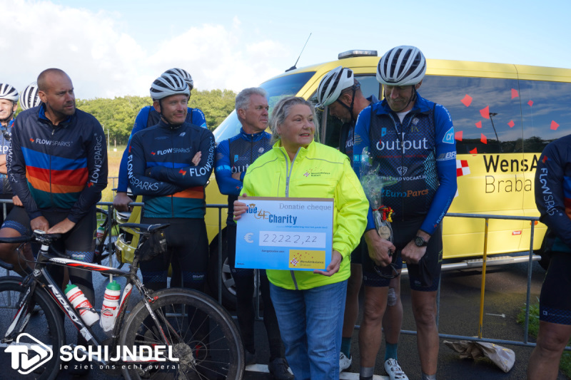 De eerste dag fietsten de renners bijna 170 kilometer naar het Belgische Voeren. Het was een mooie, vlakke tocht met aan het eind een paar heuveltjes. Dag twee was een tocht door de Eifel, Monchau en de Ardennen. Het was wederom bijna 170 kilometer. Veel klimmen en dus een pittig tochtje. Woensdag viel een beetje in het water door de vele regen. Deze dag verplaatsten de renners zich naar het Belgische Leuven. De route werd vanwege het slechte weer iets ingekort en deze dag is er daarom ‘slechts’ 120 kilometer gefietst. Toen volgde op dag vier de Koninginnenrit. Deze rit voerde door het Brabantse Pijl en had er dus ook veel beklimmingen in zitten van deze bekende tocht. Beklimmingen van 17 en 18 procent en dus ook flink afdalen. Helaas was er ook een valpartij, maar gelukkig kon de renner wel door. Met 130 kilometer in de benen bereidden de renners zich voor op de laatste dag. Vrijdag voerde de rit naar Schijndel. De renners hadden wederom pech met alle regen. Met ruim 170 kilometer op de teller arriveerden zij rond 16:00 uur bij de wielerbaan in Schijndel, waar familie, vrienden en sponsoren klaar stonden om ze te verwelkomen. Uiteraard werd ook het (voorlopig) opgehaalde bedrag bekend gemaakt en overhandigd aan Wensambulance Brabant. Maar liefst €22.222,22 euro mochten ze op de cheque noteren, een geweldig bedrag!