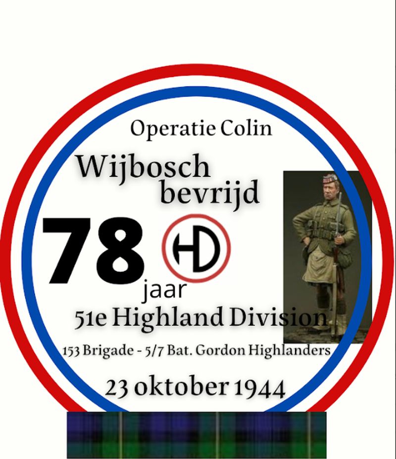 Schijndel - Wijbosch vlagt een hele week: opdat we weten, beseffen en nooit vergeten. Het Ruilnetwerk Wijbosch hangt, in samenwerking met de Dorpsraad, de vlag een hele week uit op het shared space plein. Het is namelijk 78 jaar geleden dat Wijbosch in de vroege ochtend van 23 oktober voor de tweede keer, en nu definitief, werd bevrijd. Bevrijd door de 153e brigade van de 51e Highland divisie van het Britse leger. De achtergrond van het spandoek in Wijbosch is de kleur van de geruite kleding (tartan genaamd) van de jongens van het 5/7e bataljon Gordon Highlanders die voor ons die morgen de kastanjes uit het vuur haalden. Wij willen blijven gedenken hoe bijzonder vrijheid is, zeker in het licht van de huidige tijd. In de weken voorafgaand aan de bevrijding werden Wijbosch en Schijndel bijna onophoudelijk beschoten door artillerie. De eerste granaten die op Schijndel vielen kwamen van de Duitse kant, de toren van de Sint-Servatiuskerk werd beschoten. De Duitsers hadden nog niet door dat de Amerikanen vertrokken waren en schoten voor de zekerheid op de kerktoren. Nadat de Duitsers waren teruggekeerd waren het de geallieerden die Wijbosch en Schijndel onder vuur namen.
