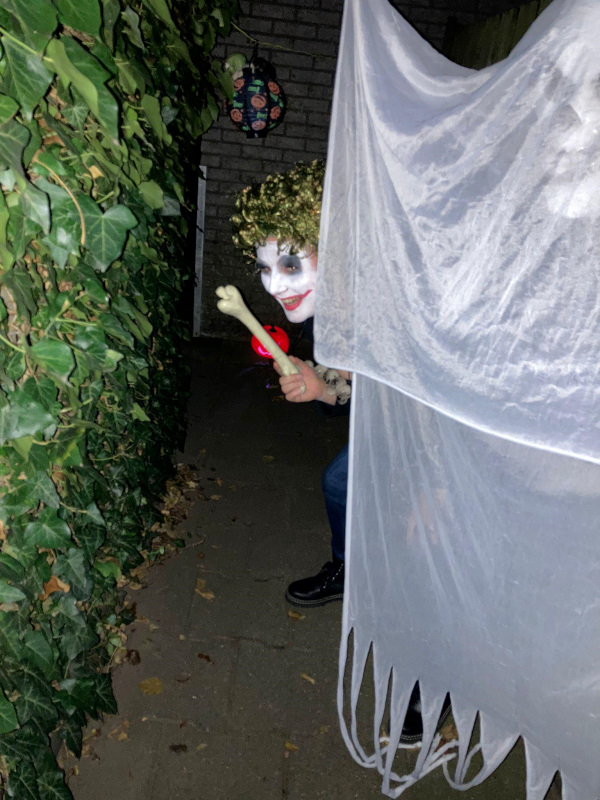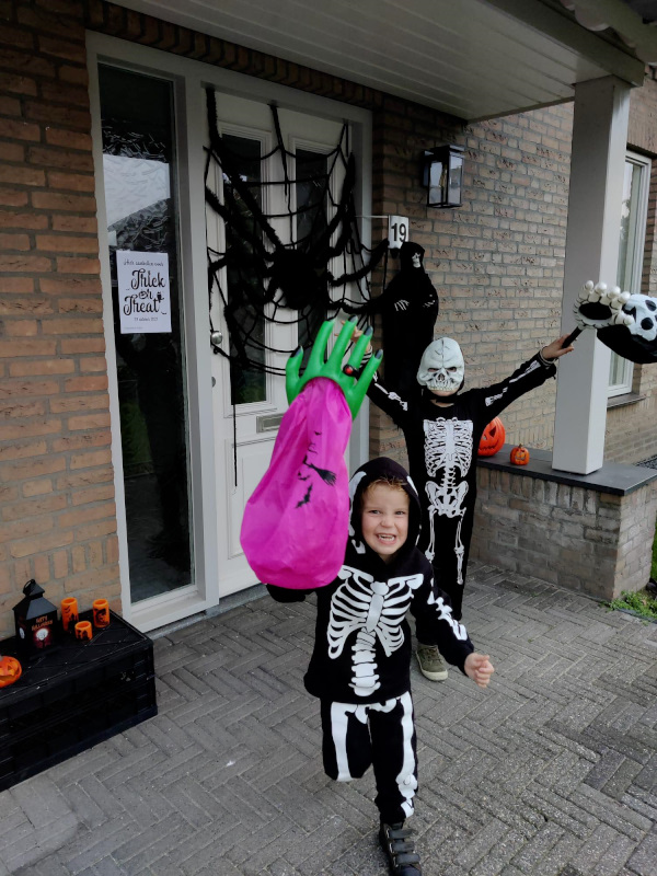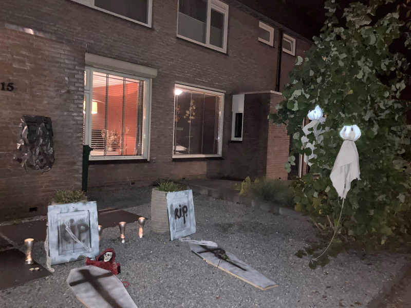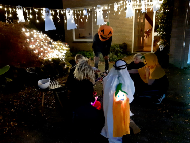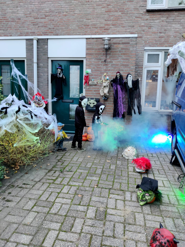 Schijndel - Ook in Wijk Plein werd afgelopen weekend Halloween gevierd. De kinderen konden bij 26 adressen langs voor hun Trick or Treat. Sommige buurtbewoners hadden samengewerkt en er een groot spektakel van gemaakt. Eén van de speeltuinen in de wijk was omgebouwd tot heksenhol met een echte heksenketel en muziek. En een griezelbrandgang met echte griezels om de kinderen te laten schrikken, een rookmachine en enge muziek. Alles om de kinderen de stuipen op het lijf te jagen. Elk jaar wordt er groter uitgepakt en het wordt steeds leuker. Soms moesten de kinderen eerst een opdracht doen voordat ze een snoepje mochten pakken. ![]() |