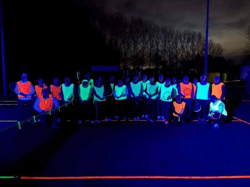 Schijndel - TC Skinlo is het nieuwe (tennis)jaar sportief begonnen. Op zaterdag 14 januari jl was er op de Schijndelse club voor de vierde maal het Glow in de Dark tennis voor alle jeugd- en seniorenleden. Het evenement gaf een speciale sfeer zo tijdens deze nog donkere dagen. Organisatoren Henk v/d Crommert, Tim v/d Steeg en Elise Hoefnagels namen de organisatie dit jaar voor het eerst op zich: 'Ze willen dit unieke evenement graag voortzetten.'