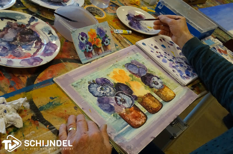 Schijndel - Bloemen, vlinders, een zeeman... je kunt schilderen wat je wil. En volgens 'juffie' Gerry de Groot kunnen mensen veel meer dan ze zelf denken. Welzijn de Meierij organiseert op maandag en dinsdag de cursus tekenen en schilderen voor iedereen die dit leuk vindt en hier meer over wil leren. Gezelligheid is een belangrijke factor. En de mensen brengen zelf in wat ze willen schilderen en samen met Gerry wordt bekeken wat ze nodig hebben aan materiaal of technieken om hun werk naar tevredenheid te maken.