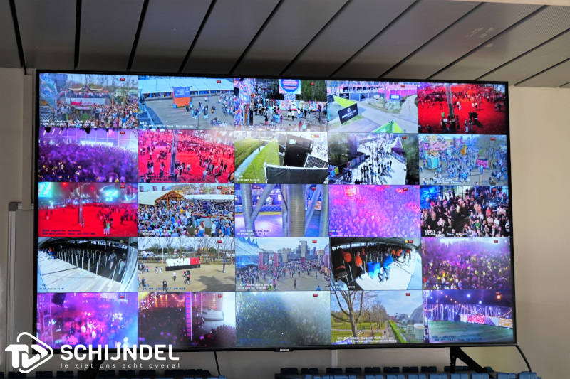 Zo zien we exclusieve beelden van camerabewaking op en rondom het terrein en beelden van een politiedrone boven de tenten. Deze staat in direct contact met de meldkamer voor een overzicht. Bekijk de beelden in de video.