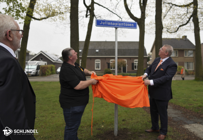 Het Julianaplantsoen aan de Boschweg, met vier bomen genoemd naar Juliana, Bernhard, Beatrix en Irene, werd vrijdag 29 april in ere hersteld. Wethouder Johan van Gerwen en Richard Huijberts, voorzitter van Stichting Rondom d’n Toren, hadden de eer om de twee nieuwe straatnaambordjes voor het Julianaplantsoen onthullen.