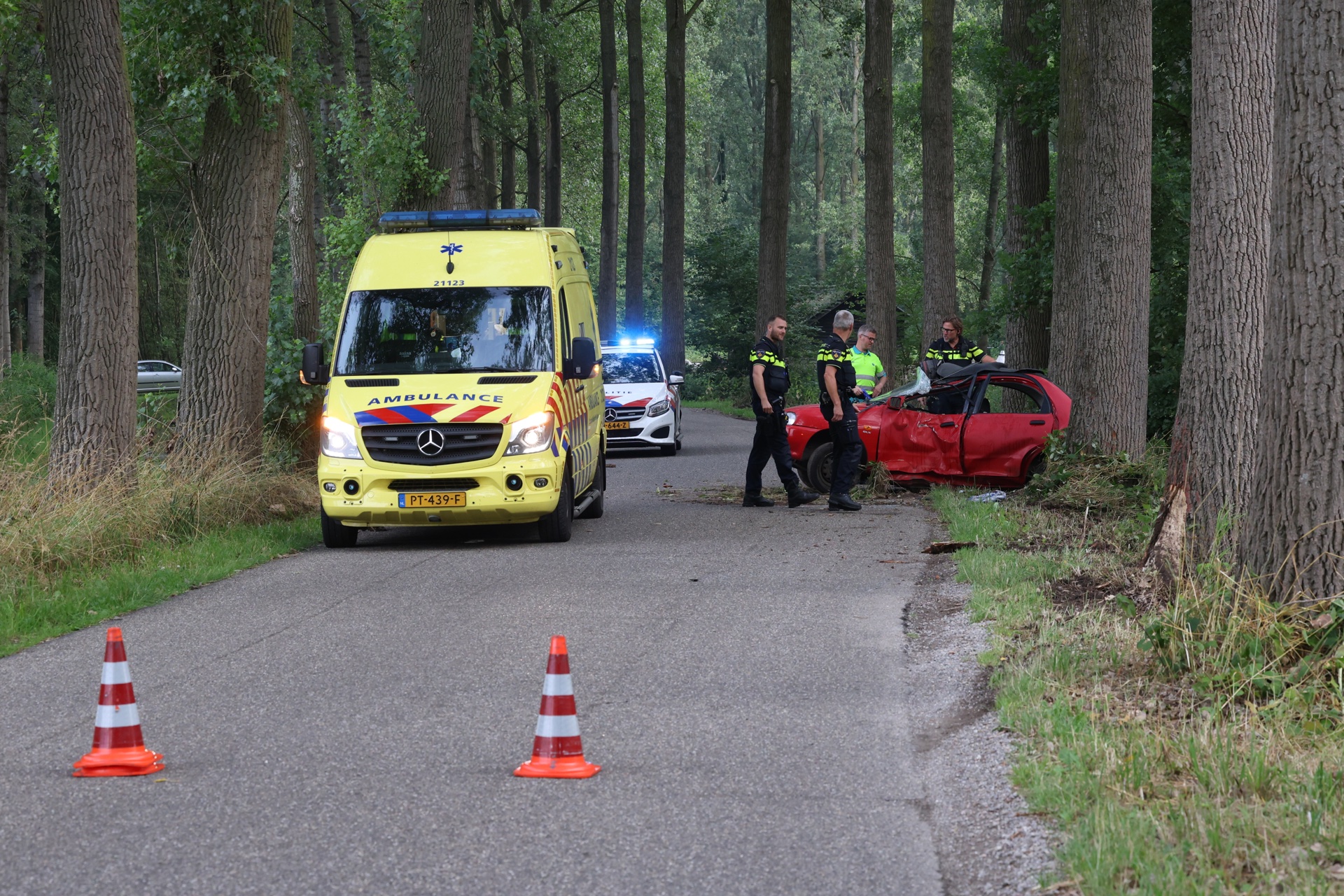 De auto liep grote schade op, de weg was enige tijd gestremd voor het overige verkeer. De automobilist is met onbekende verwondingen per ambulance overgebracht naar het ziekenhuis. Een bergingsbedrijf heeft de zwaar gehavende auto geborgen. Info en foto's: Persburo Sander van Gils