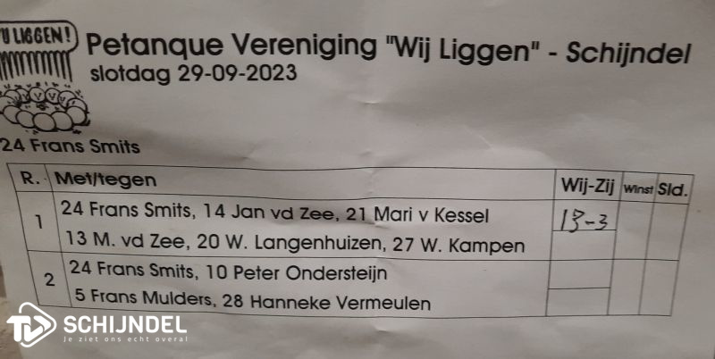 Schijndel - Vrijdag 29 september was de slotactiviteit van ‘Boules in je buurt’ bij Petanque vereniging Wij liggen in Schijndel. Deze middag was de afsluitende bijeenkomst van de jeu de boules dagen die in de afgelopen 4 weken op 6 locaties in Meierijstad werd georganiseerd samen de sportcoaches van de gemeente en More2win, welzijnspartners en vrijwilligers.