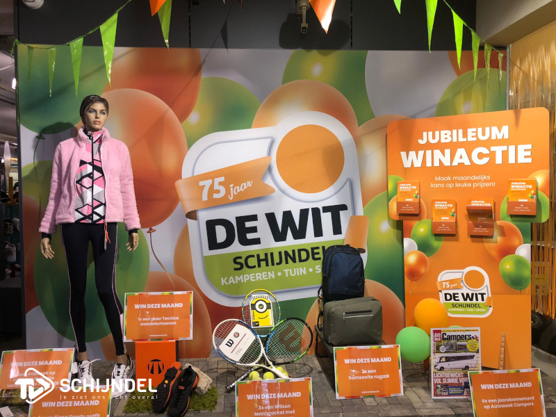De Wit Schijndel is in heel Nederland maar ook daarbuiten een begrip. Met kampeerartikelen van hun eigen merken: Bardani, Safarica en DWS maar ook met de bekende A-merken voorziet de Wit vele kampeerders van allerlei benodigdheden. De winkel heeft een ruime sportafdeling waar ook gedacht wordt aan de lokale sportverenigingen. Mark: ‘Voor sporters hebben wij een uitgebreid assortiment sportkleding en benodigdheden. Wij vinden het daarnaast belangrijk om iets terug te geven aan de gemeenschap en sponsoren daarom ook verschillende Schijndelse sportclubs.’ Omdat niet bekend is welke dag Grard nou precies begonnen is wordt de 75e verjaardag dit hele jaar gevierd met speciale win- en kortingsacties.